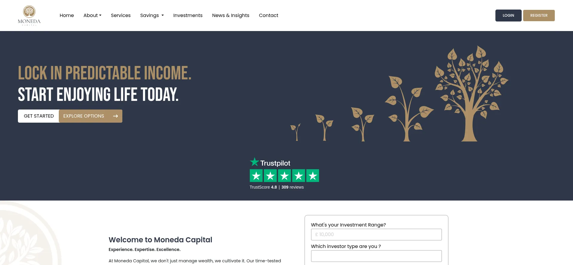 该网站实现数据收集表单,请求个人信息,包括姓名、电子邮件地址、电话号码或其他敏感详细信息。用户应验证 monedacapitalgroup.com 的合法性并在提交个人数据前查看隐私政策。