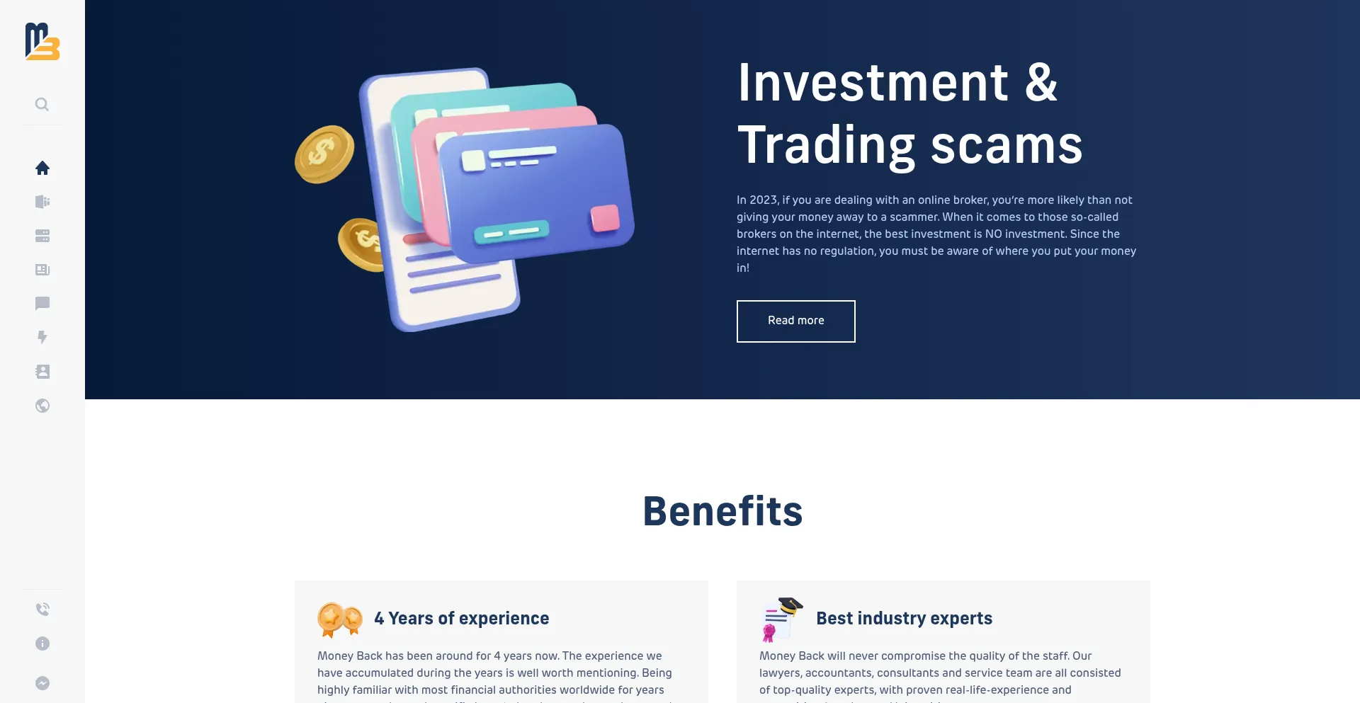 网站 money-back.com 宣传针对丢失或被盗资产的资金恢复服务。虽然一些在应急费用结构上运营,其他可能需要预付款,这可能表明欺诈运营。在聘请此类服务前验证凭据和监管合规性。