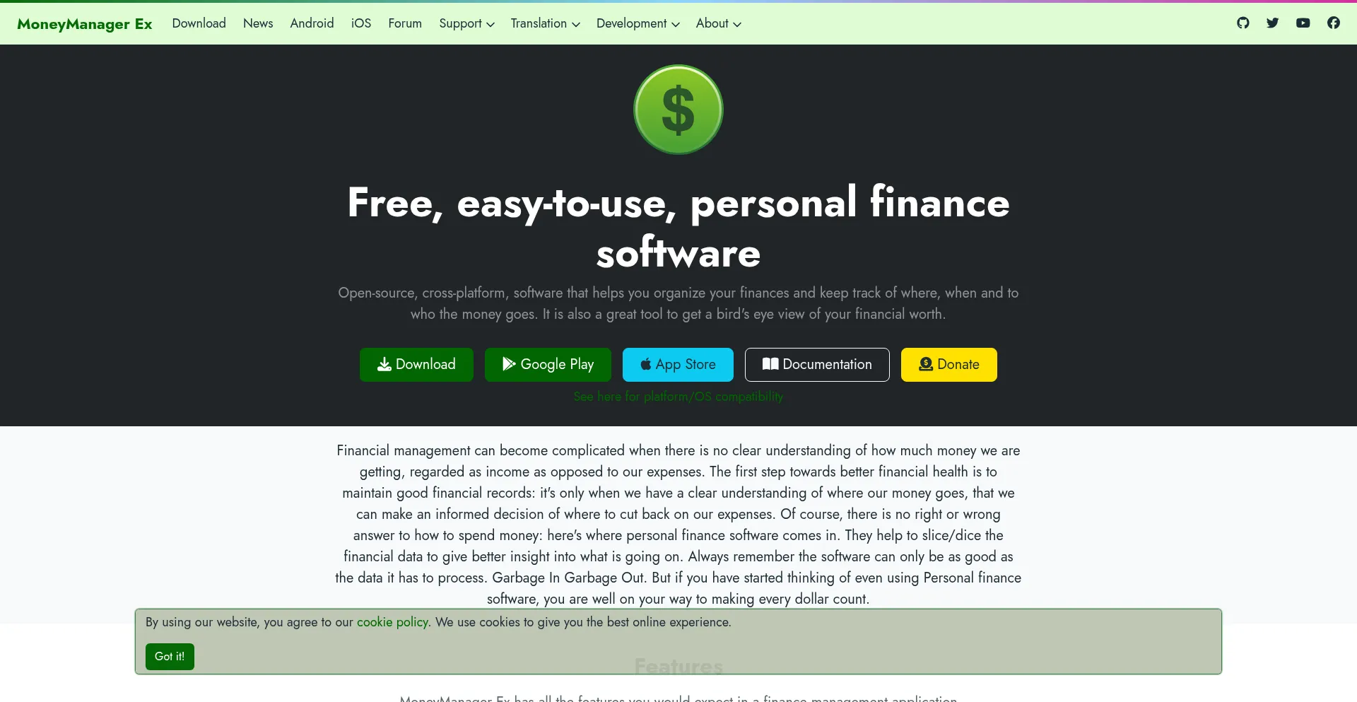 moneymanagerex.org 拥有可用的 iOS 移动应用程序,表明为 Apple 设备用户提供跨平台可访问性。