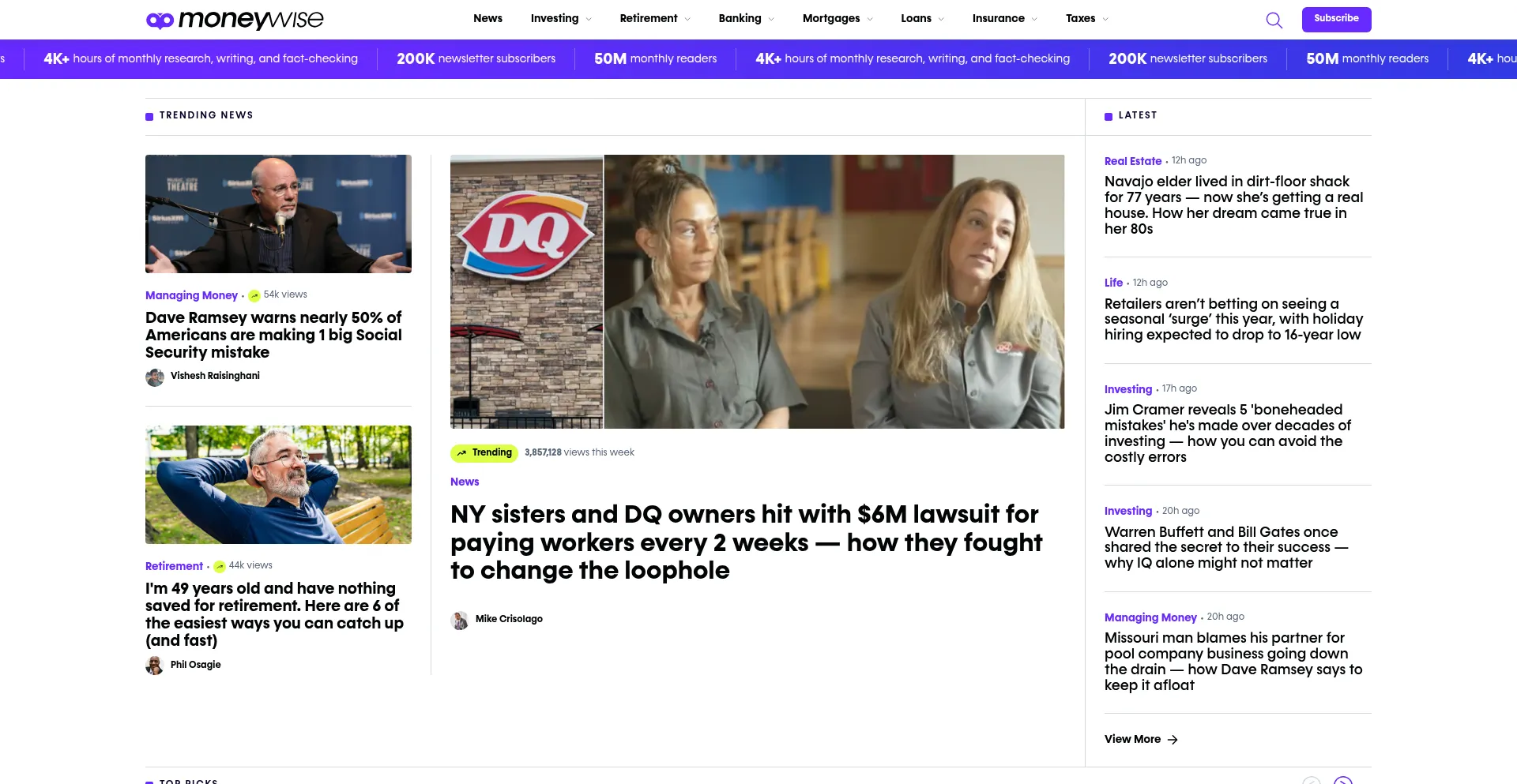 网站上存在社交媒体链接表明 moneywise.com 在社交媒体上维护官方账户,这是可信度和参与度的积极信号。