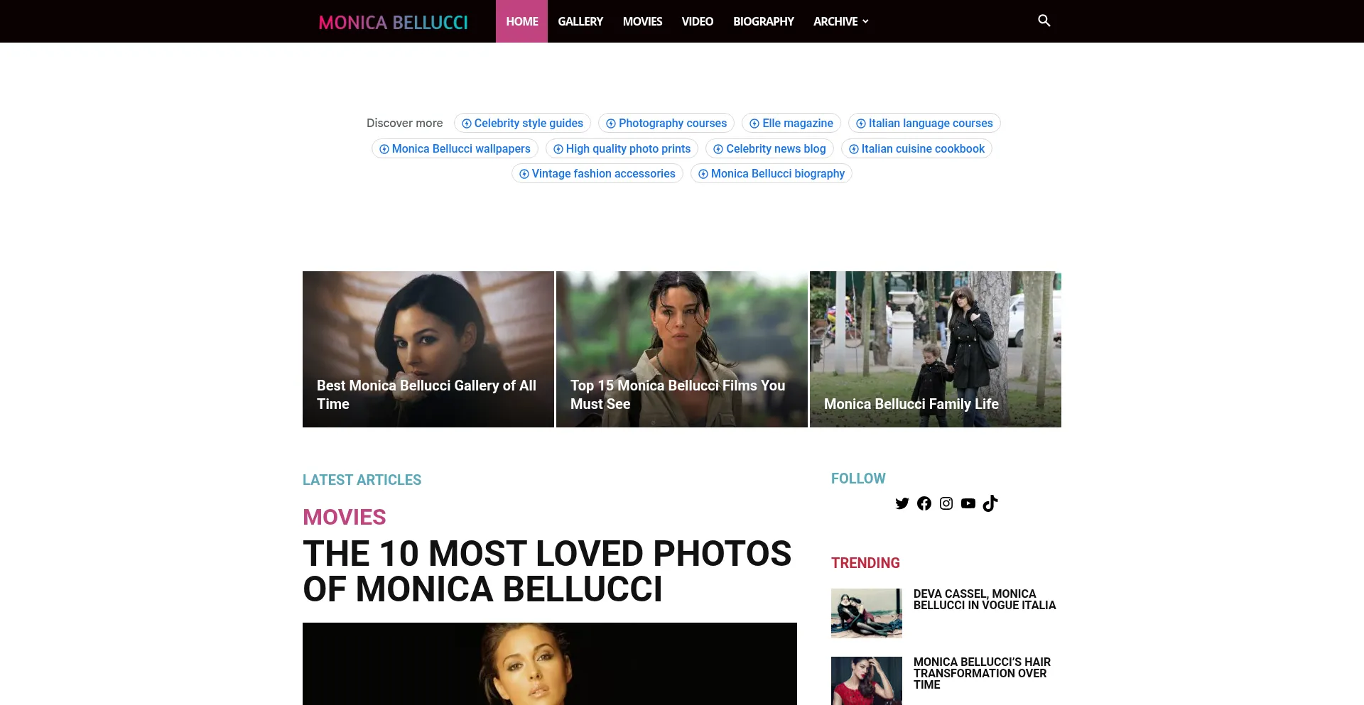 网站上存在社交媒体链接表明 monicabellucci.net 在社交媒体上维护官方账户,这是可信度和参与度的积极信号。