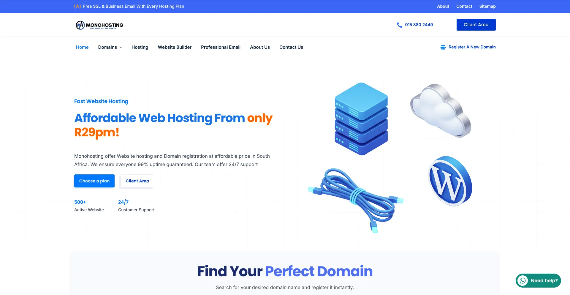 Monohosting is Affordable Web Hosting in South Africa that offer Domain registration and website hosting as low as R29 pm 30 day money back