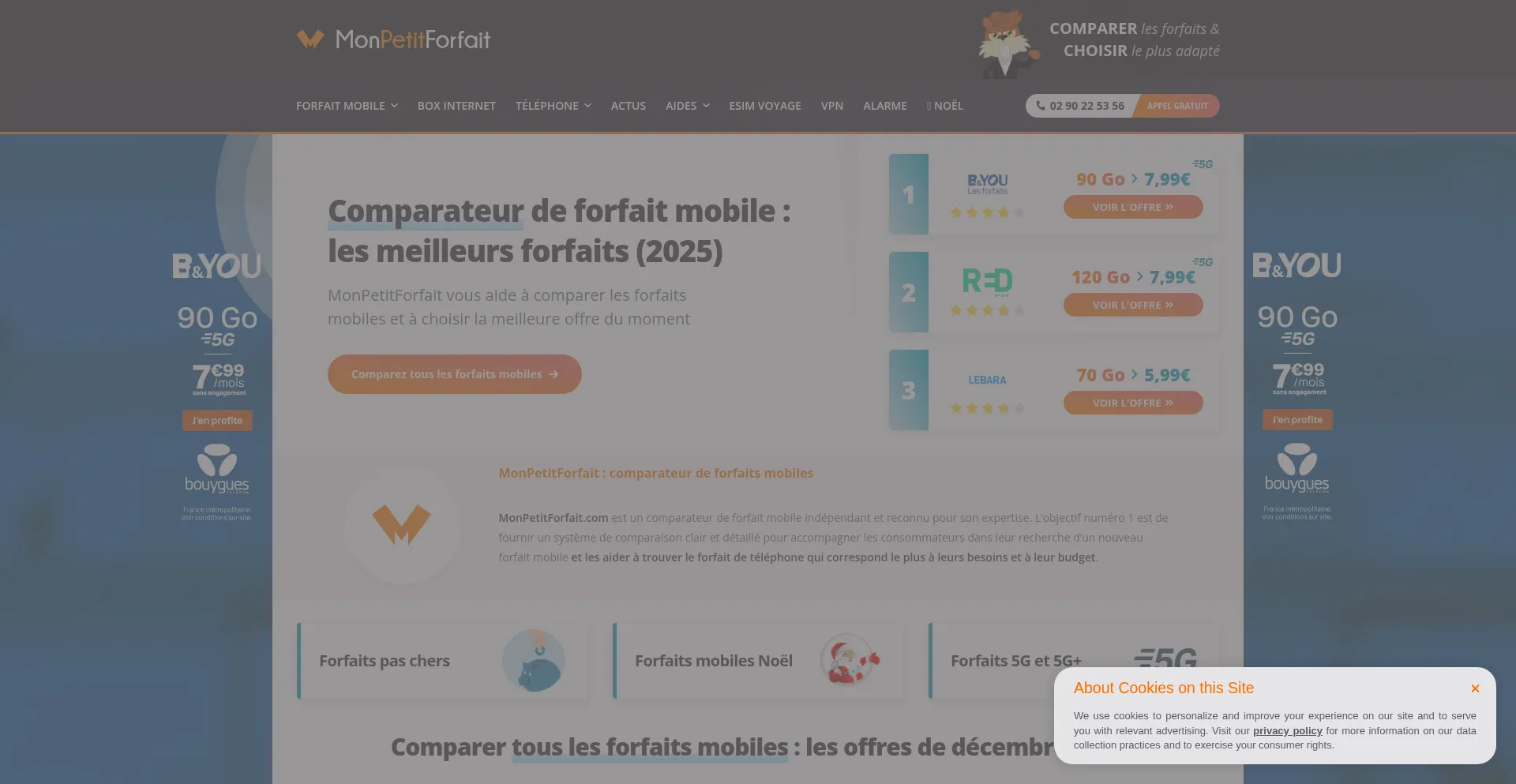该网站实现符合GDPR或CCPA等隐私法规的cookie同意机制。这表明 monpetitforfait.com 遵守数据保护标准并为用户提供对个人数据收集实践的控制。