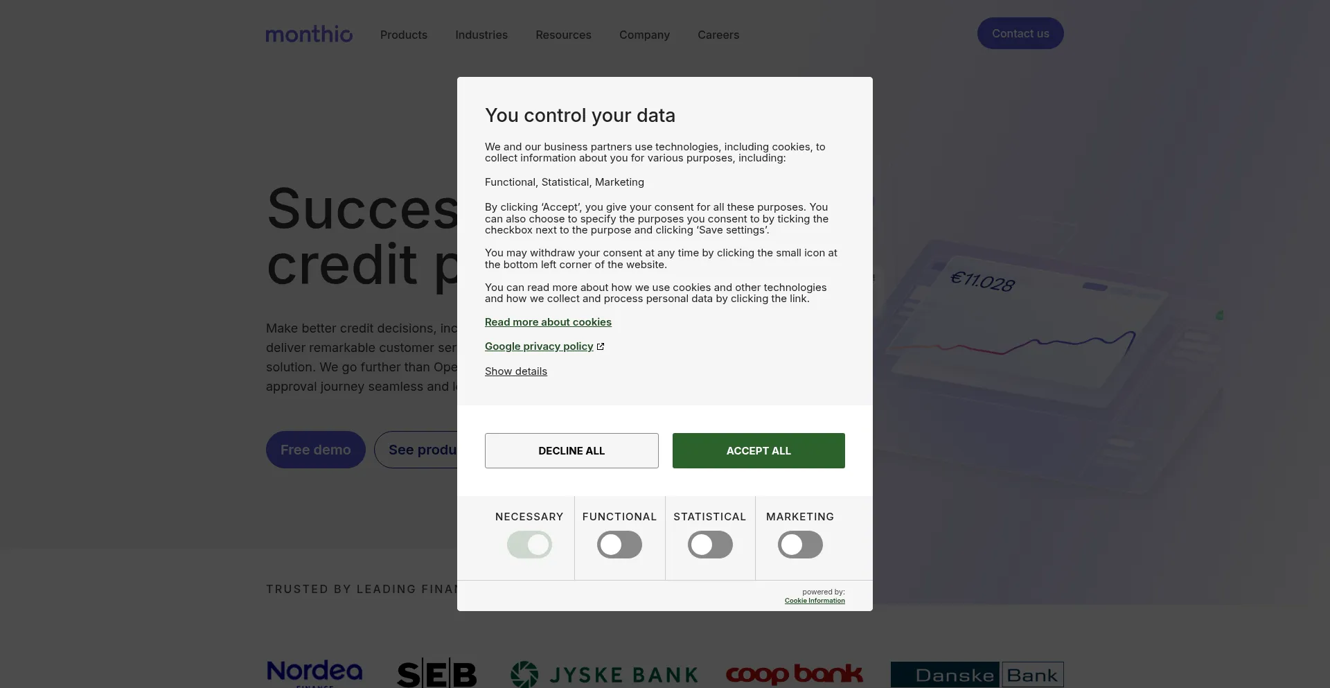 该网站实现符合GDPR或CCPA等隐私法规的cookie同意机制。这表明 monthio.dk 遵守数据保护标准并为用户提供对个人数据收集实践的控制。