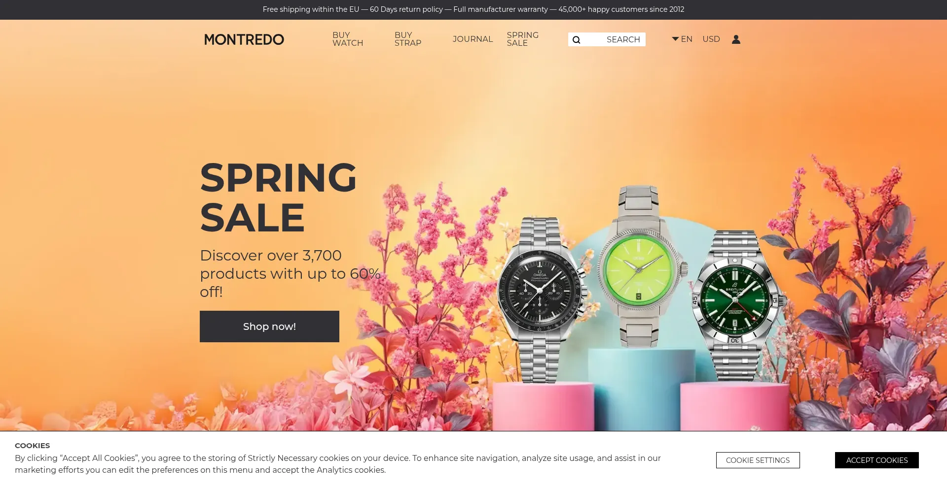 montredo.com 使用 Google Tag Manager 在其网站上添加和更新追踪代码(标签)。