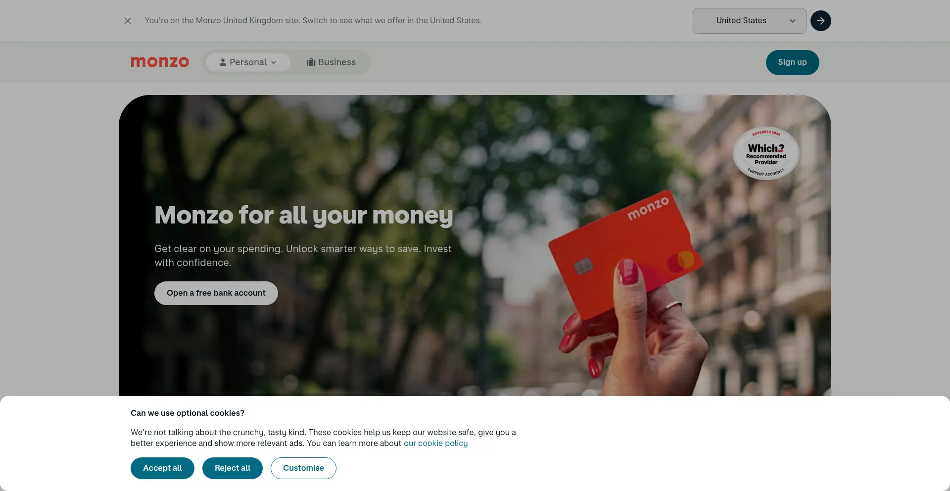 Organise, save & invest with a free UK current account, joint account or business account. Make your money more Monzo.