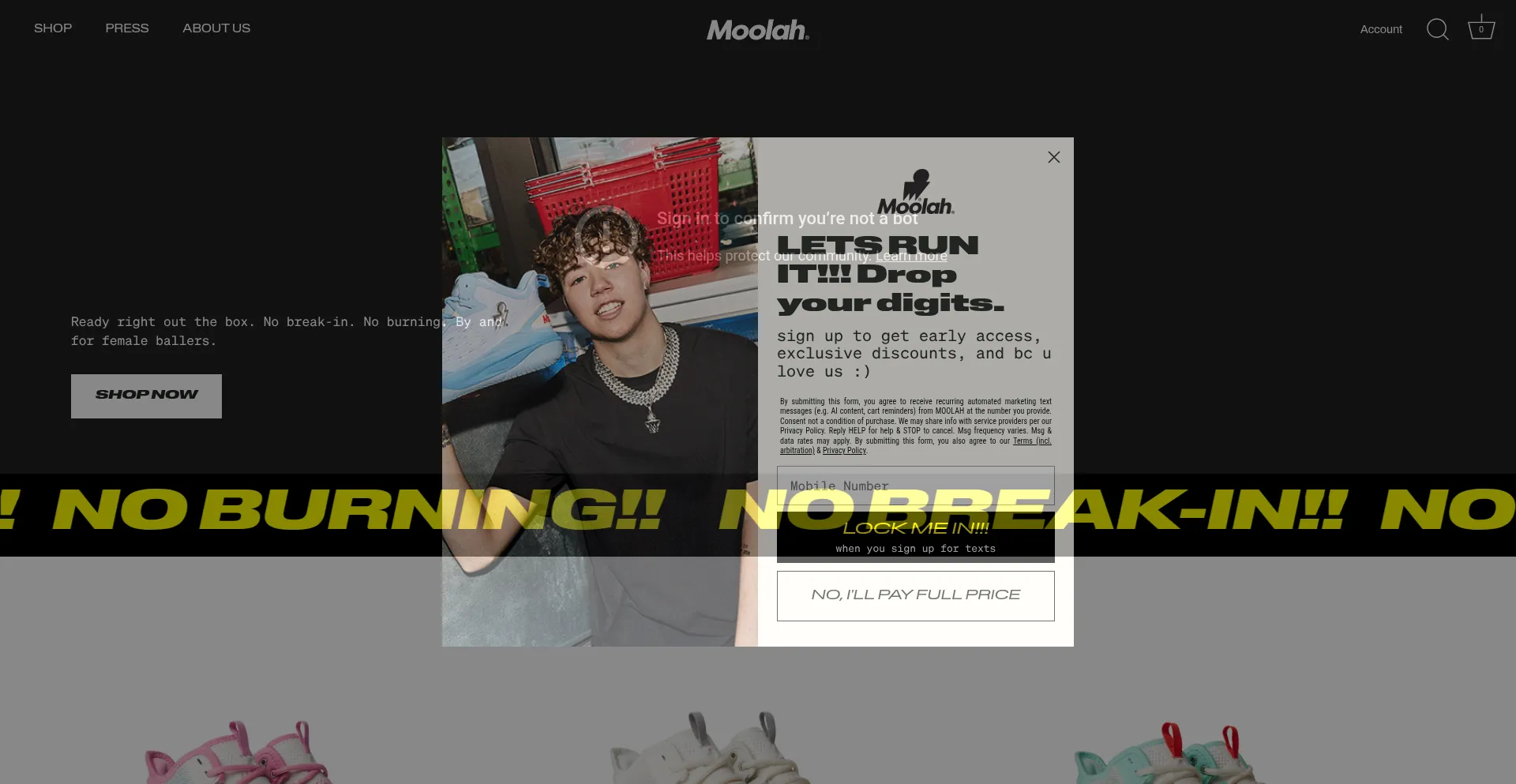 网站上存在社交媒体链接表明 moolahkicks.com 在社交媒体上维护官方账户,这是可信度和参与度的积极信号。