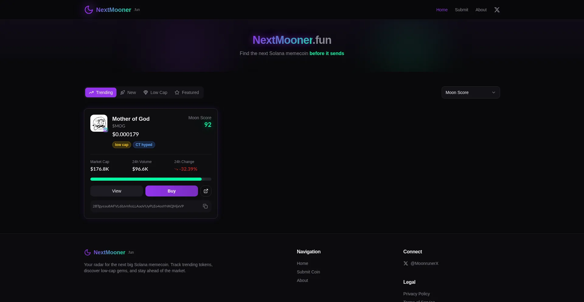 NextMooner.fun - Find the Next Solana Memecoin Before It Sends