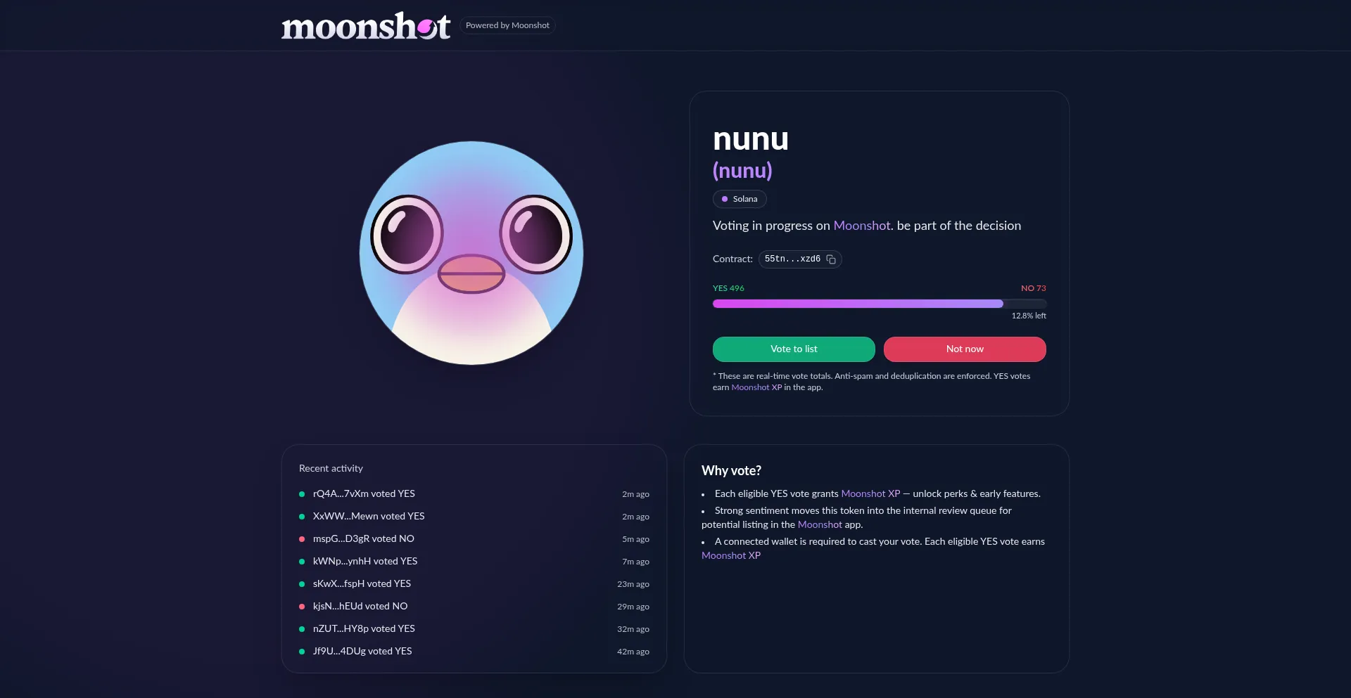 Community vote to list the next meme coin on Moonshot. Earn Moonshot XP for each vote.