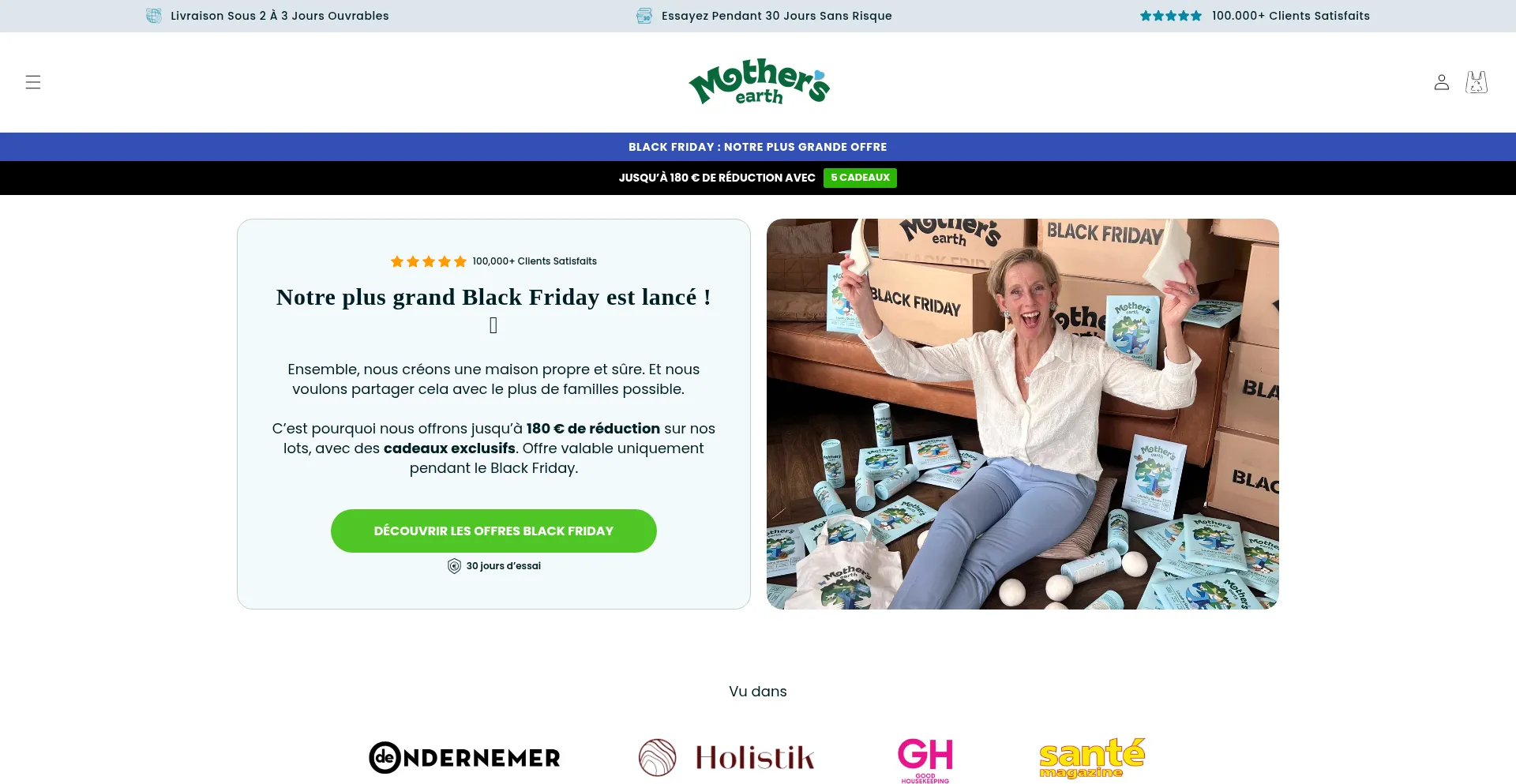 mothersearth.fr 使用 Google Tag Manager 在其网站上添加和更新追踪代码(标签)。