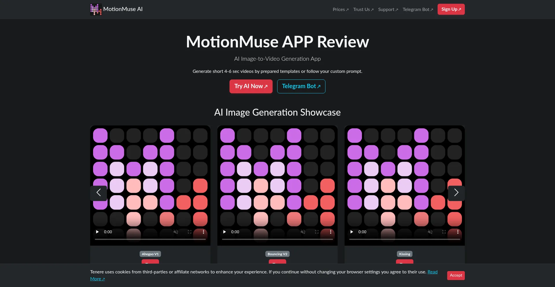 MotionMuse is an AI web app for generating short 4-6 sec videos from images using templates or custom prompts. Try for free or choose a plan!