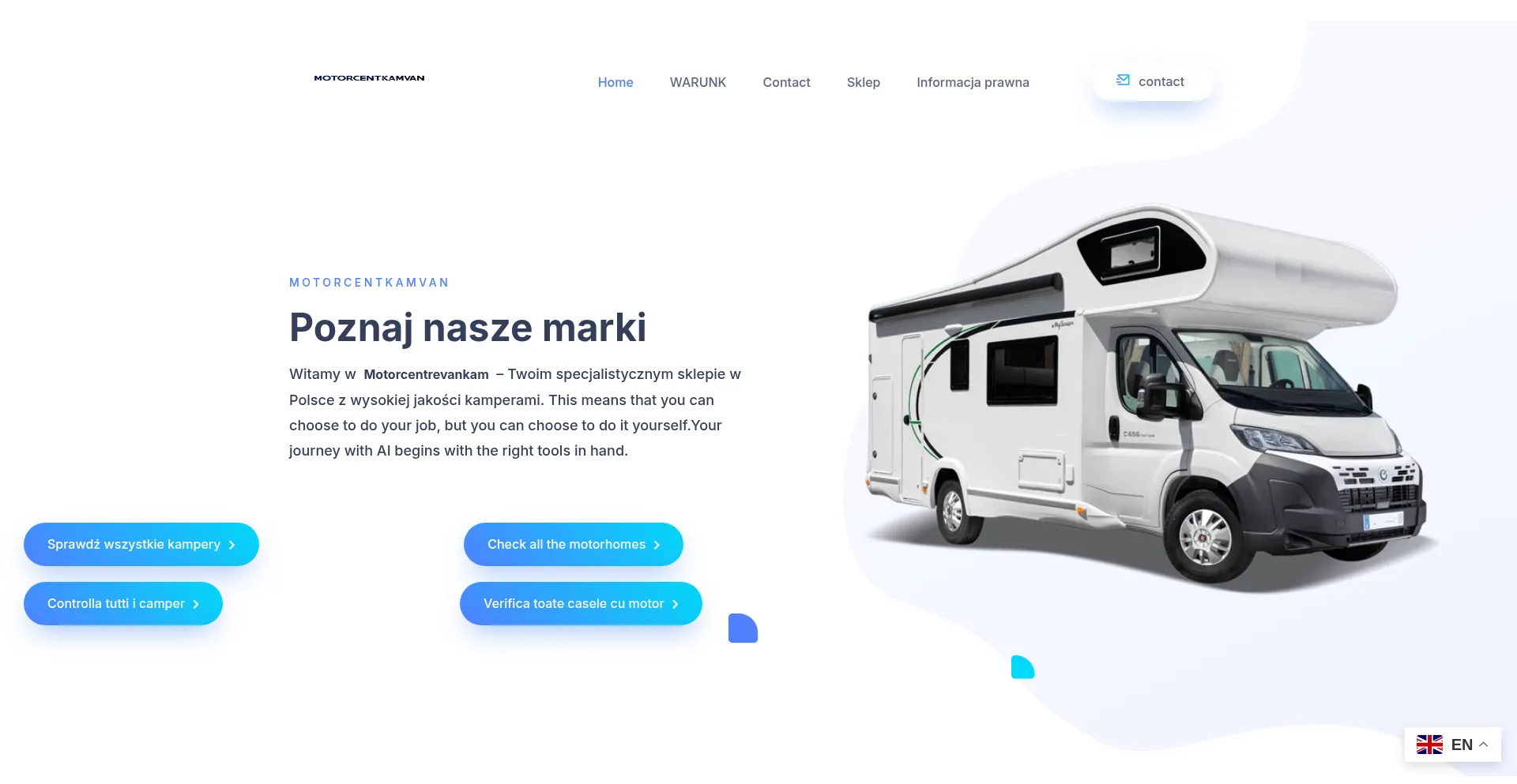 Witamy w Motorcentrevankam – Twoim specjalistycznym sklepie w Polsce z wysokiej jakości kamperami. Odkryj naszą szeroką gamę pojazdów dostosowanych do każdej po