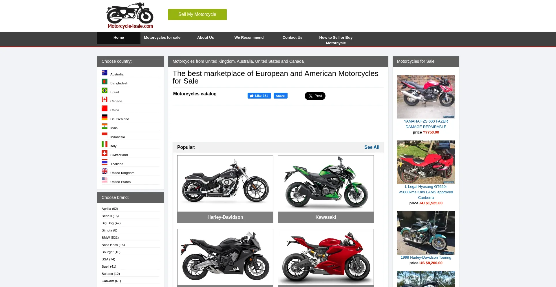 Catalog of motorcycles, tips on choosing and buying a motorcycle in United Kingdom and USA. Biggest selection of motorcycles for sale.