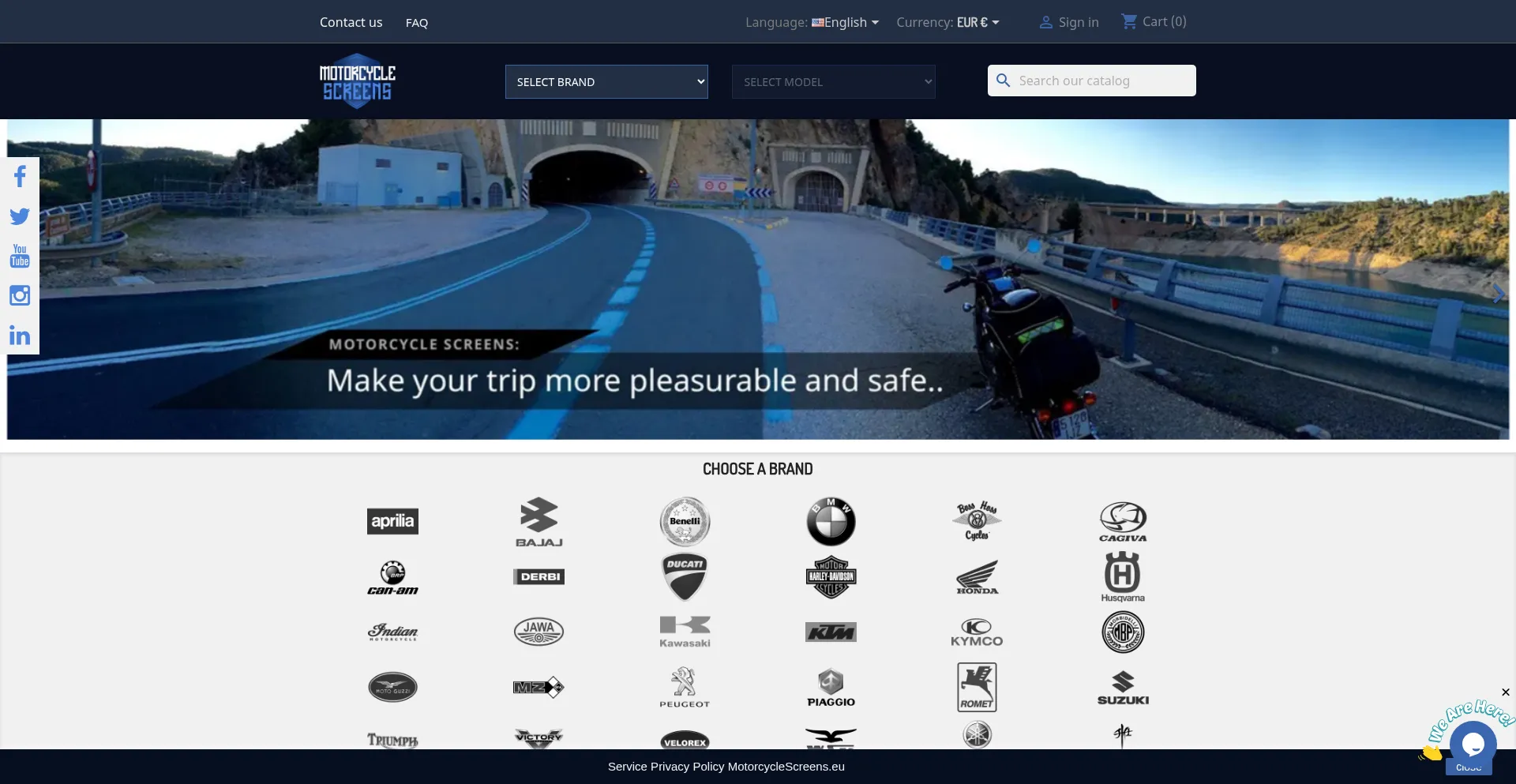 网站上存在社交媒体链接表明 motorcyclescreens.eu 在社交媒体上维护官方账户,这是可信度和参与度的积极信号。
