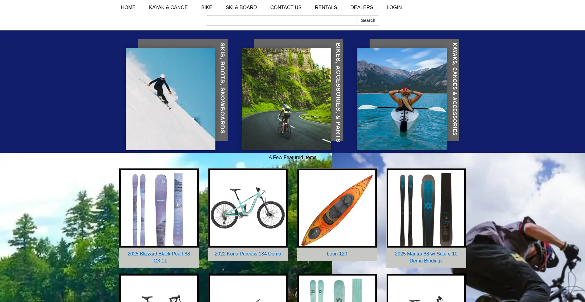 Kayaks, Canoes, Skis & Bikes for sale, rental & demo.