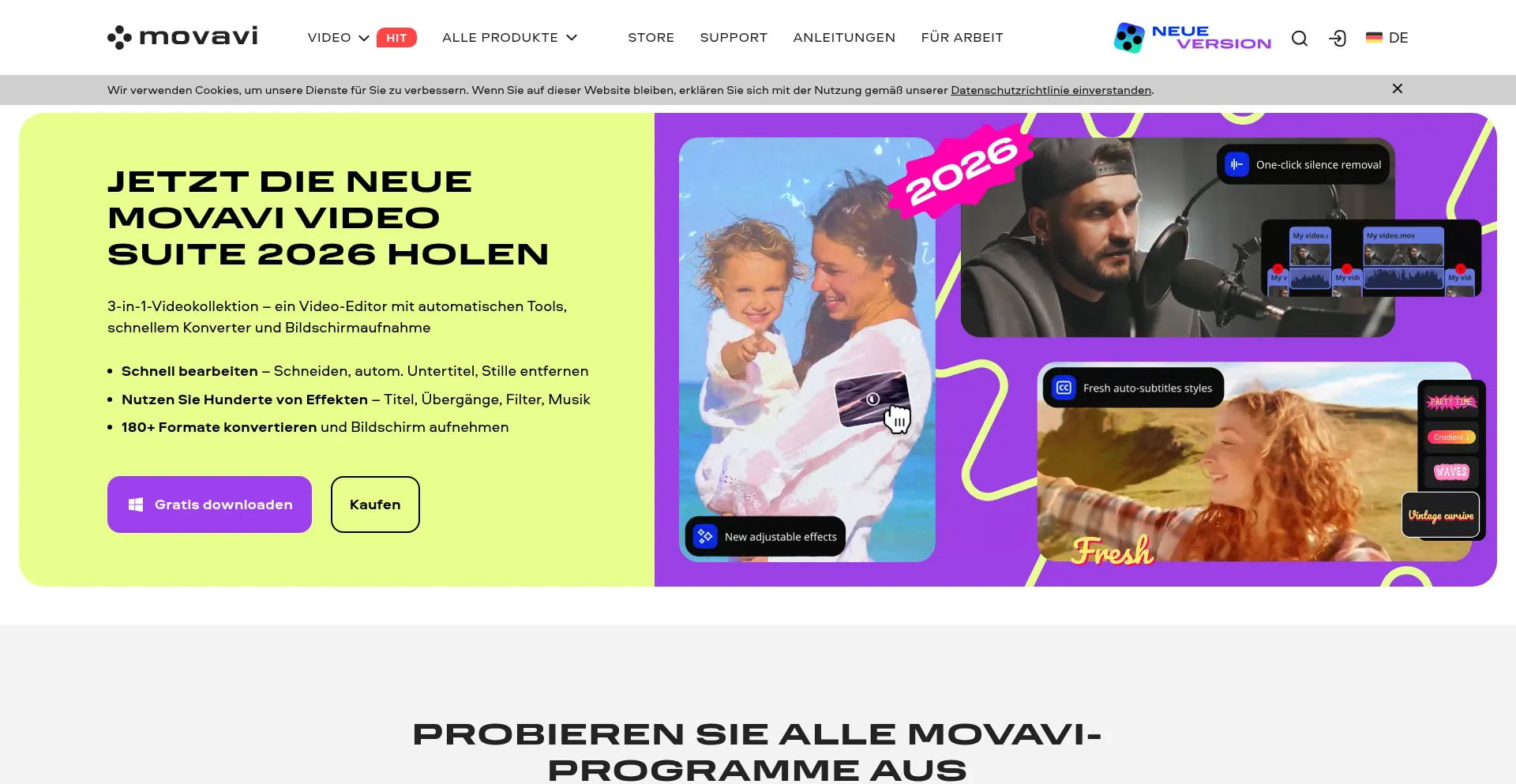 Holen Sie sich gute Videoprogramme und andere Software zur Multimedia-Bearbeitung wie Movavi Video Editor und Movavi Video Suite.