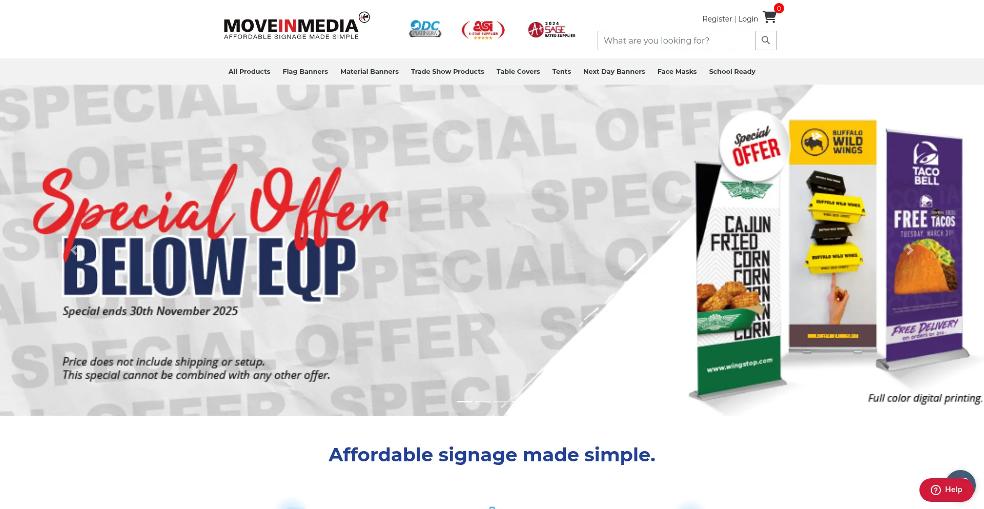 MoveInMedia offers a wide range of trade show displays, custom banner printing, pop up tents, custom table covers and much more.