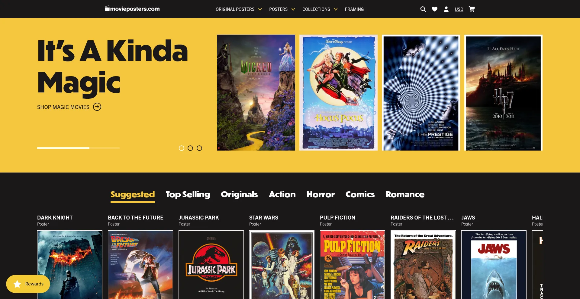 网站 movieposters.com 使用免费电子商务平台解决方案,这可能表明成本意识运营,但也可能暗示与企业级解决方案相比在安全功能、客户支持或高级功能方面的限制。