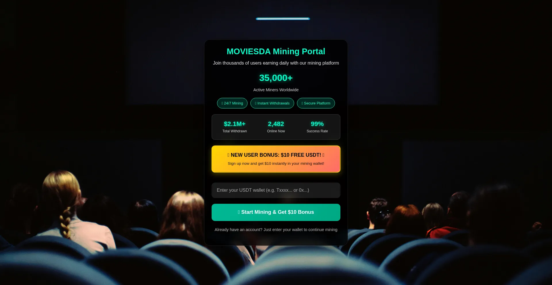 网站 moviesda.site 可能提供云挖矿服务或加密货币挖矿投资。一些平台提供合法的挖矿租赁服务,而其他平台可能使用虚假的挖矿仪表板来显示无法提取的虚拟收益。