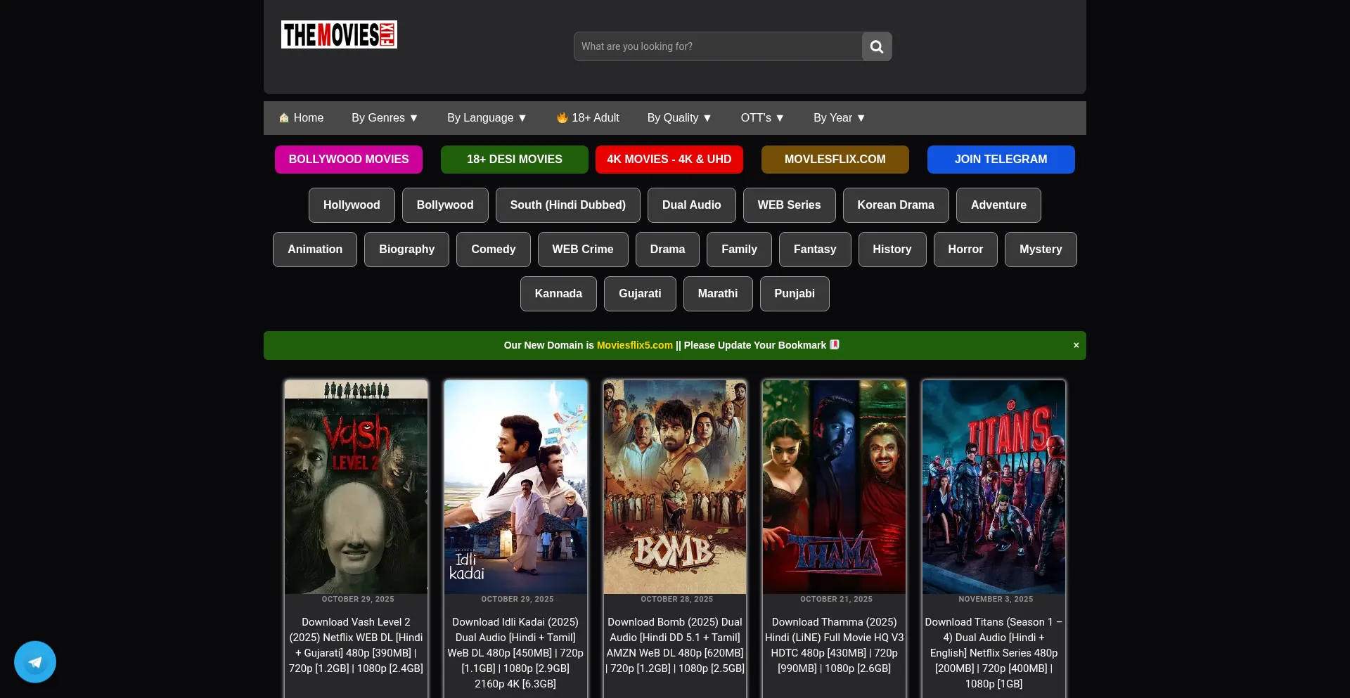 Download Bollywood, Hollywood, South Indian Movies, Web Series & Anime in 480p, 720p, 1080p & 4K. Hindi, English & Multi-Language 300MB and 700mb Movies Available at Moviesflix ...