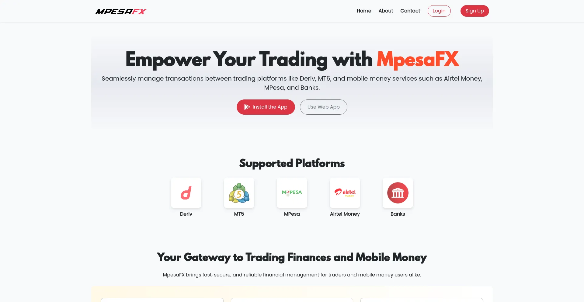 mpesafx.com 提供 Android 设备移动应用程序,表明平台存在已扩展到网络服务之外。