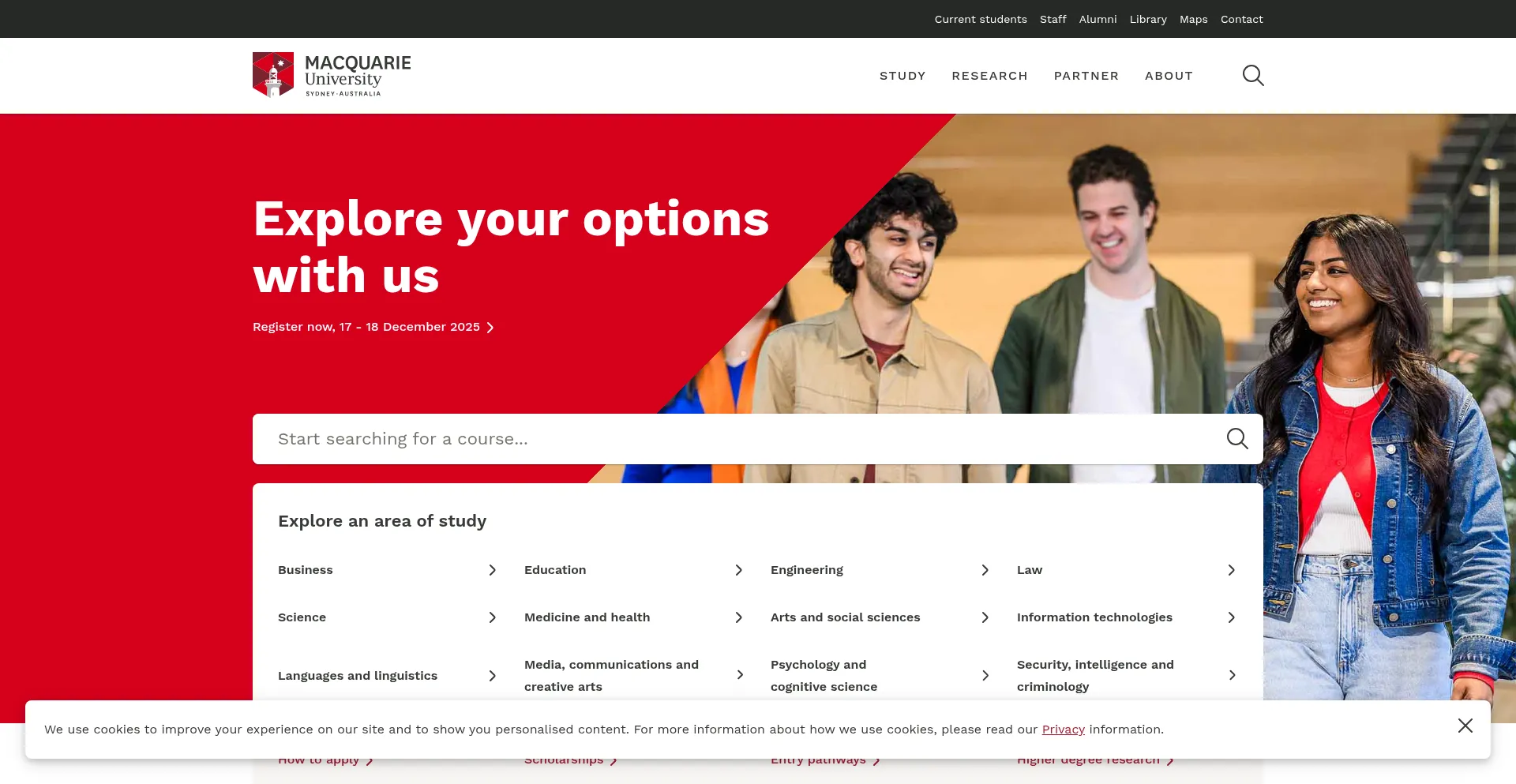 Macquarie University is a place of pioneering minds, breaking free of conventions. Discover our story as one of the global leaders in tertiary education.