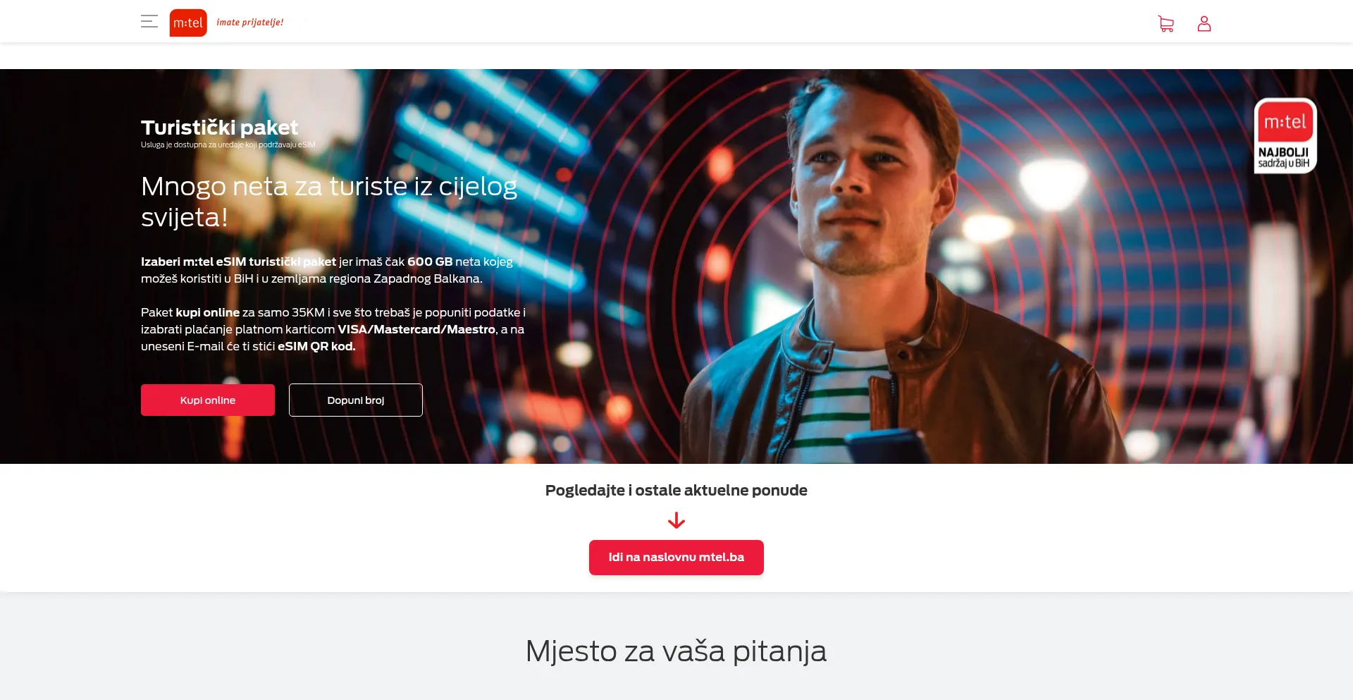 网站上存在社交媒体链接表明 mtel.ba 在社交媒体上维护官方账户,这是可信度和参与度的积极信号。