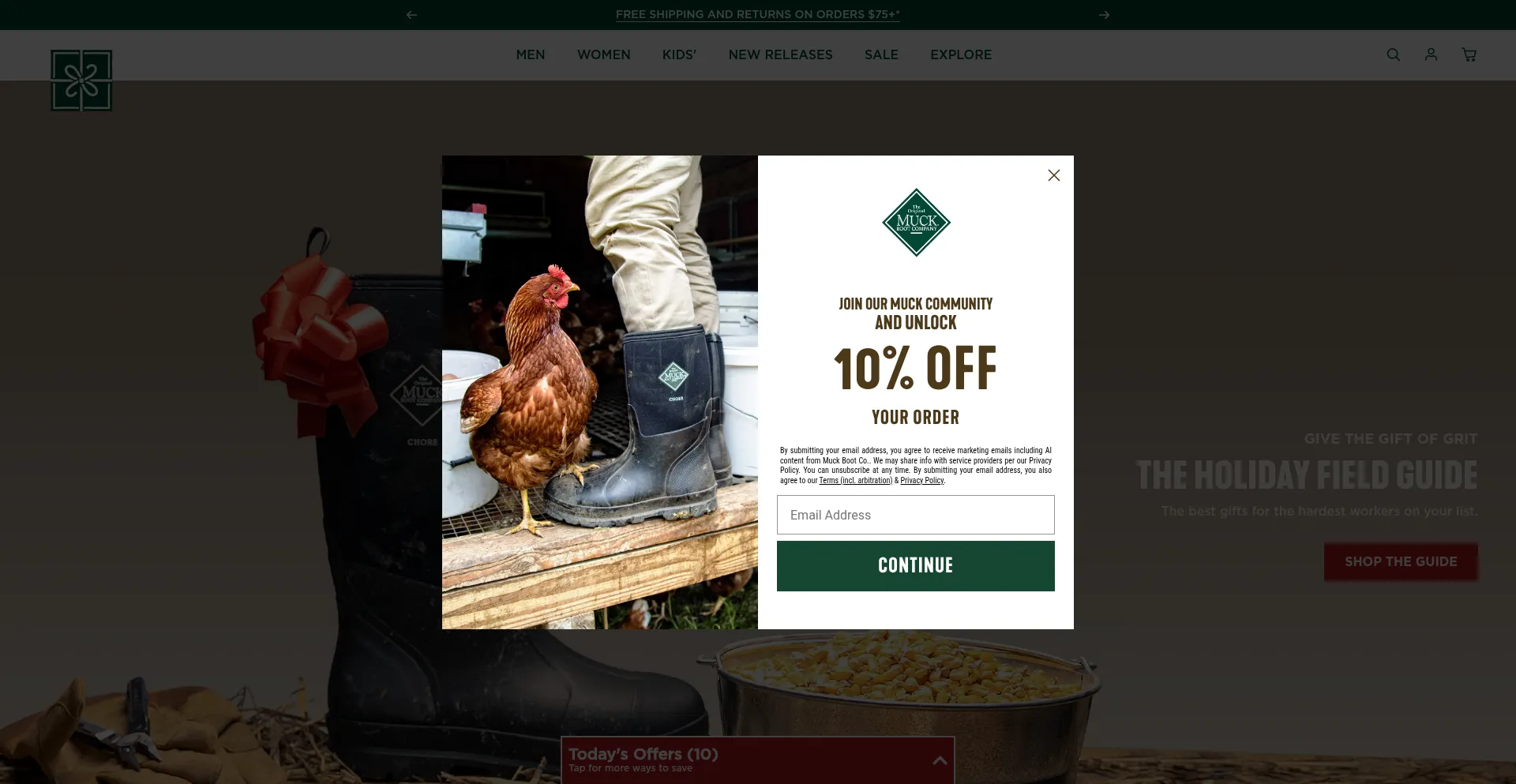 该网站实现数据收集表单,请求个人信息,包括姓名、电子邮件地址、电话号码或其他敏感详细信息。用户应验证 muckbootcompany.com 的合法性并在提交个人数据前查看隐私政策。