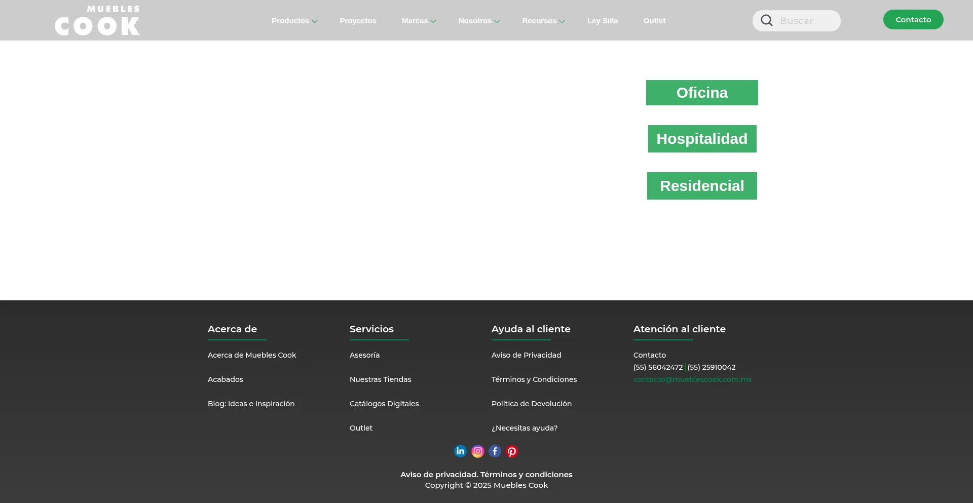网站上存在社交媒体链接表明 mueblescook.com.mx 在社交媒体上维护官方账户,这是可信度和参与度的积极信号。