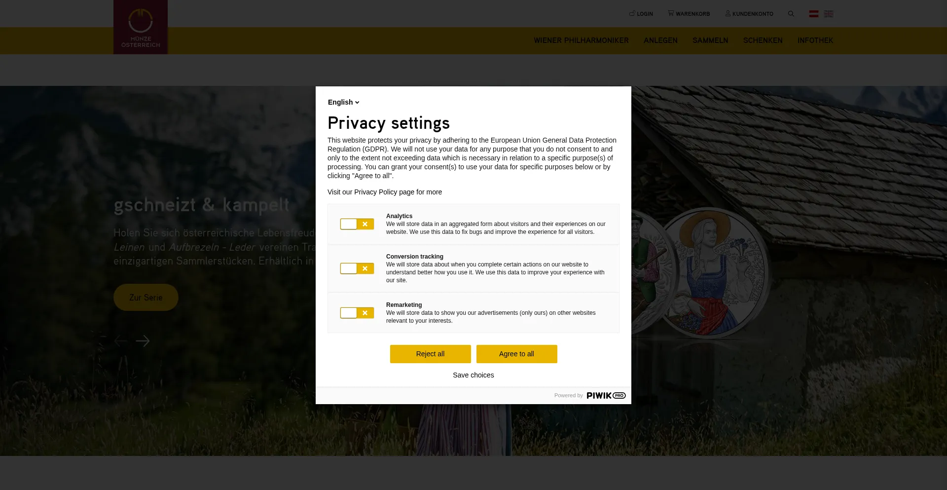 该网站实现符合GDPR或CCPA等隐私法规的cookie同意机制。这表明 muenzeoesterreich.at 遵守数据保护标准并为用户提供对个人数据收集实践的控制。