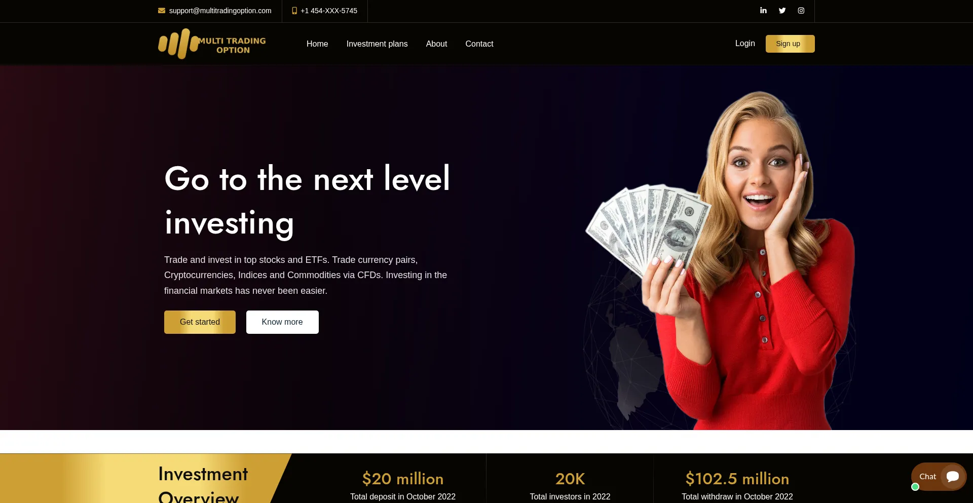 帮助保护他人,快在社交媒体上分享此页面吧!知道multitradingoption.com的人越多,骗子就越难得逞。 通过在社交媒体上分享此页面,帮助更多人发现可靠的multitradingoption.com吧!