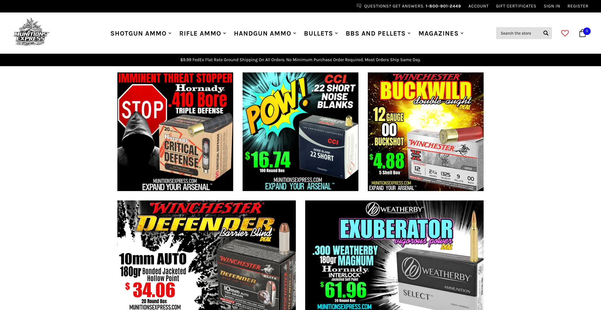 All the top ammunition brands at discount prices. Fast, $9.99 Flat Rate Ground Shipping on all orders. Order by the box or case. In stock and ready to ship.