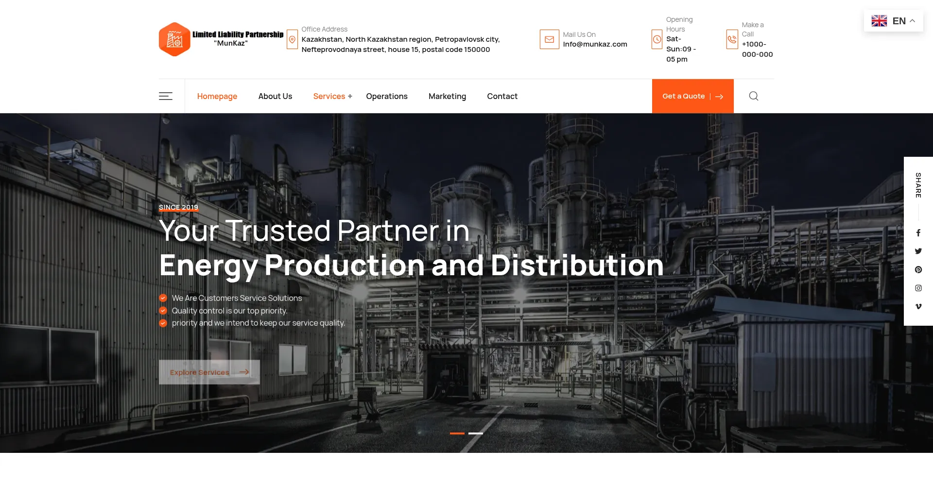 SINCE 2019 Your Trusted Partner in Energy Production and Distribution We Are Customers Service Solutions Quality control is our top priority. priority and we...