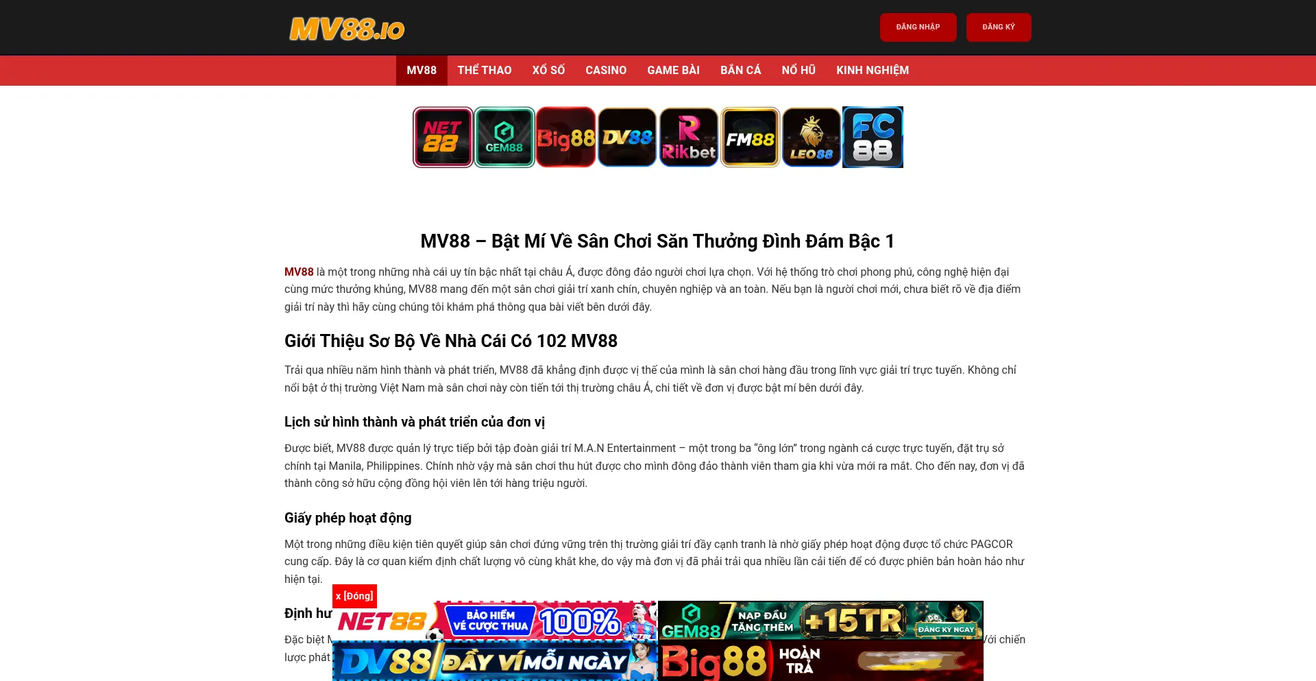 Khám phá MV88 - thương hiệu cá cược hàng đầu châu Á nổi bật nhờ hệ thống kho sản phẩm đa dạng cùng hệ thống bảo mật tối tân nhất t...