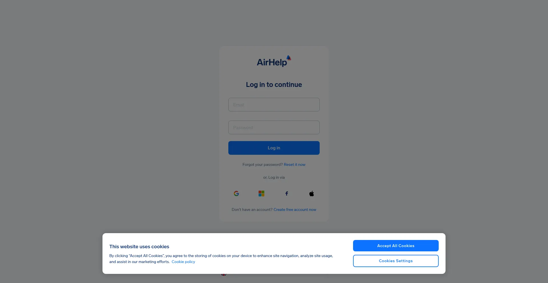 该网站实现符合GDPR或CCPA等隐私法规的cookie同意机制。这表明 my.airhelp.com 遵守数据保护标准并为用户提供对个人数据收集实践的控制。