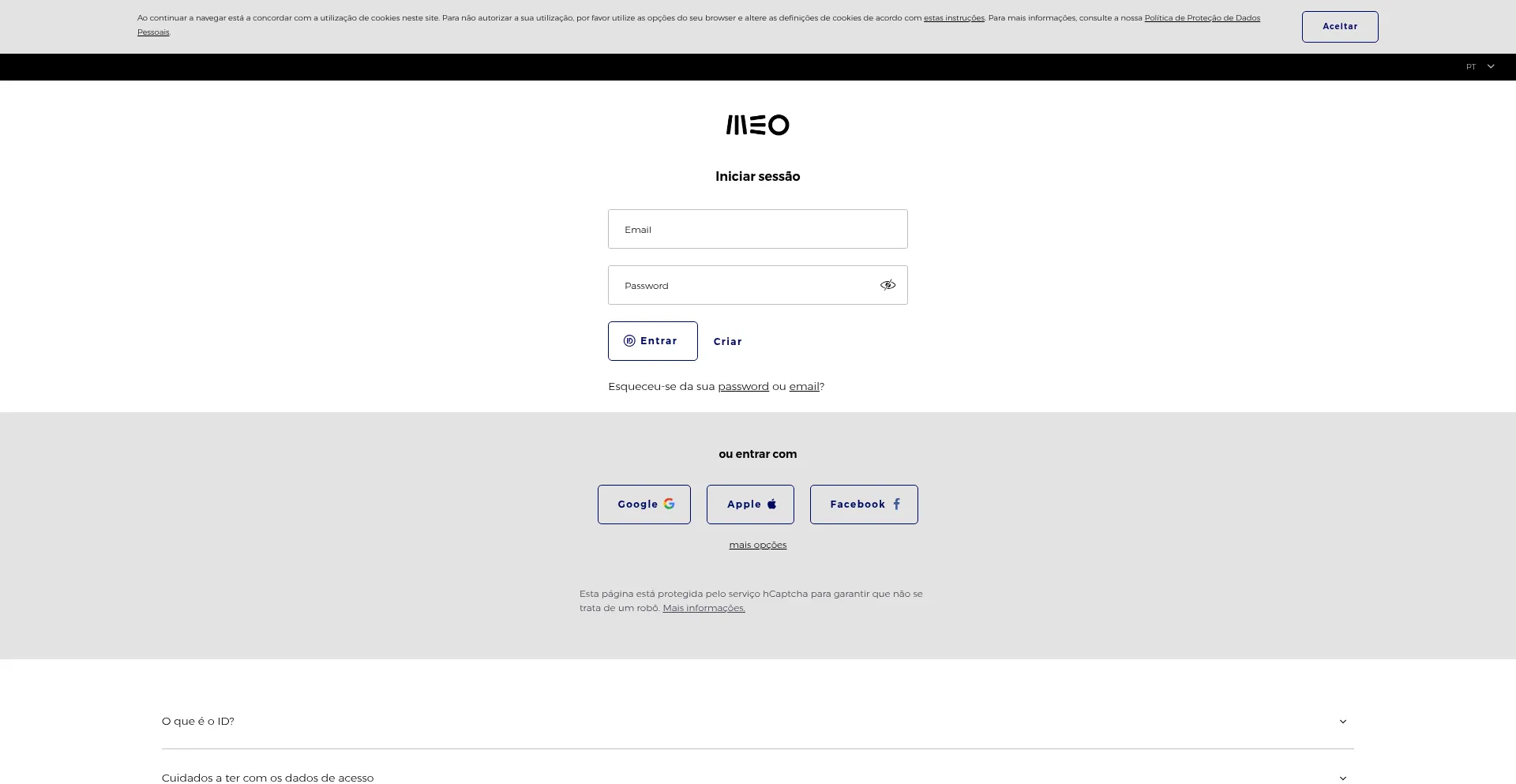 该网站实现数据收集表单,请求个人信息,包括姓名、电子邮件地址、电话号码或其他敏感详细信息。用户应验证 my.meo.pt 的合法性并在提交个人数据前查看隐私政策。