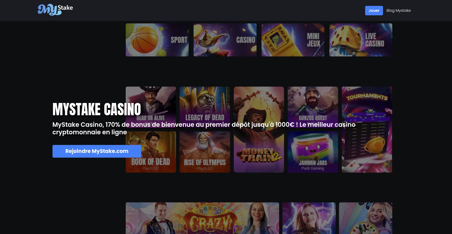 Inscrivez-vous sur MyStake Casino et obtenez 170% de bonus de bienvenue au premier dépôt jusqu'à 1000€ ! Le meilleur casino en ligne.