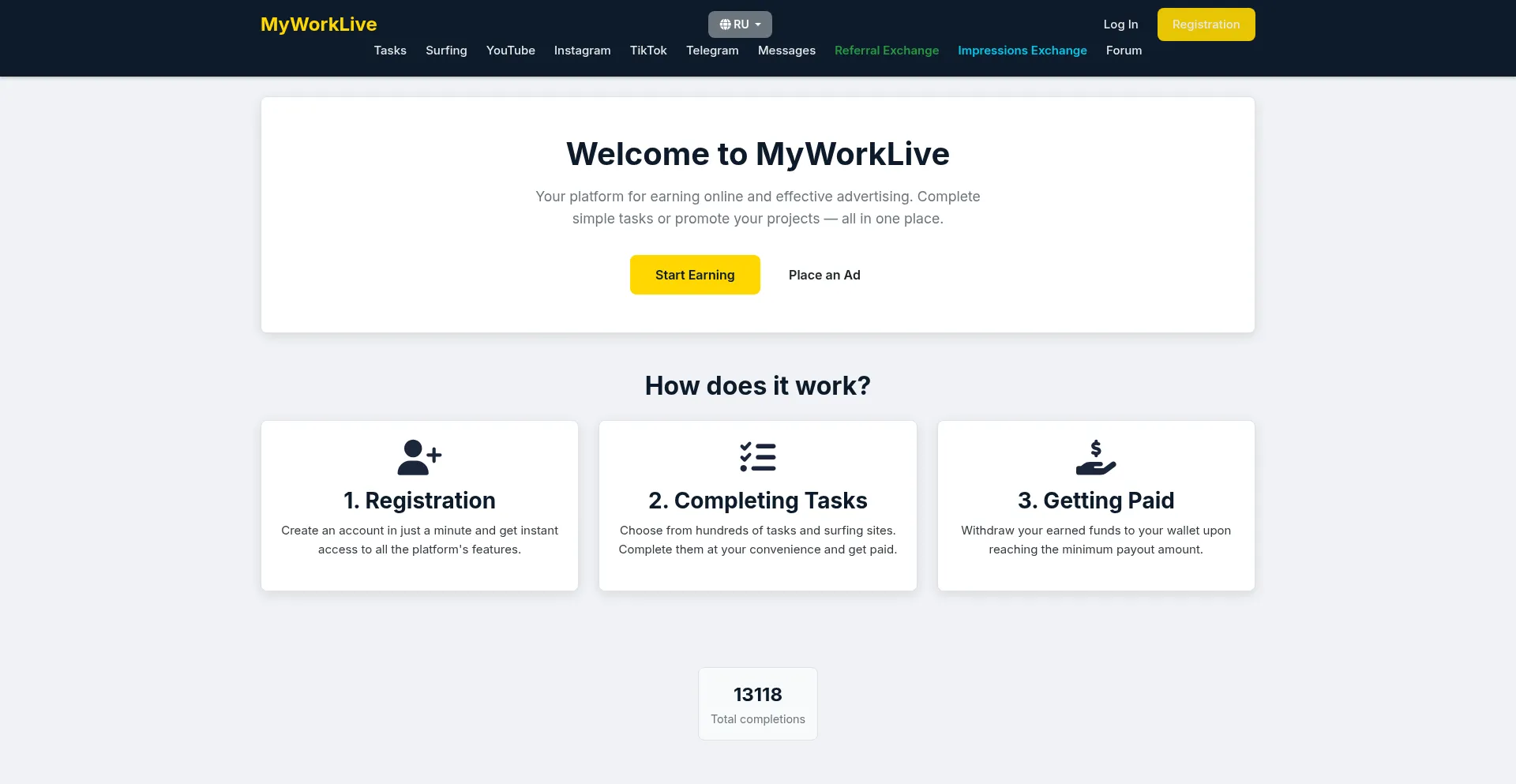 Reliable microtask exchange My-Work-Live: earn money online, social media promotion, and passive income. Instant payouts. Join now!