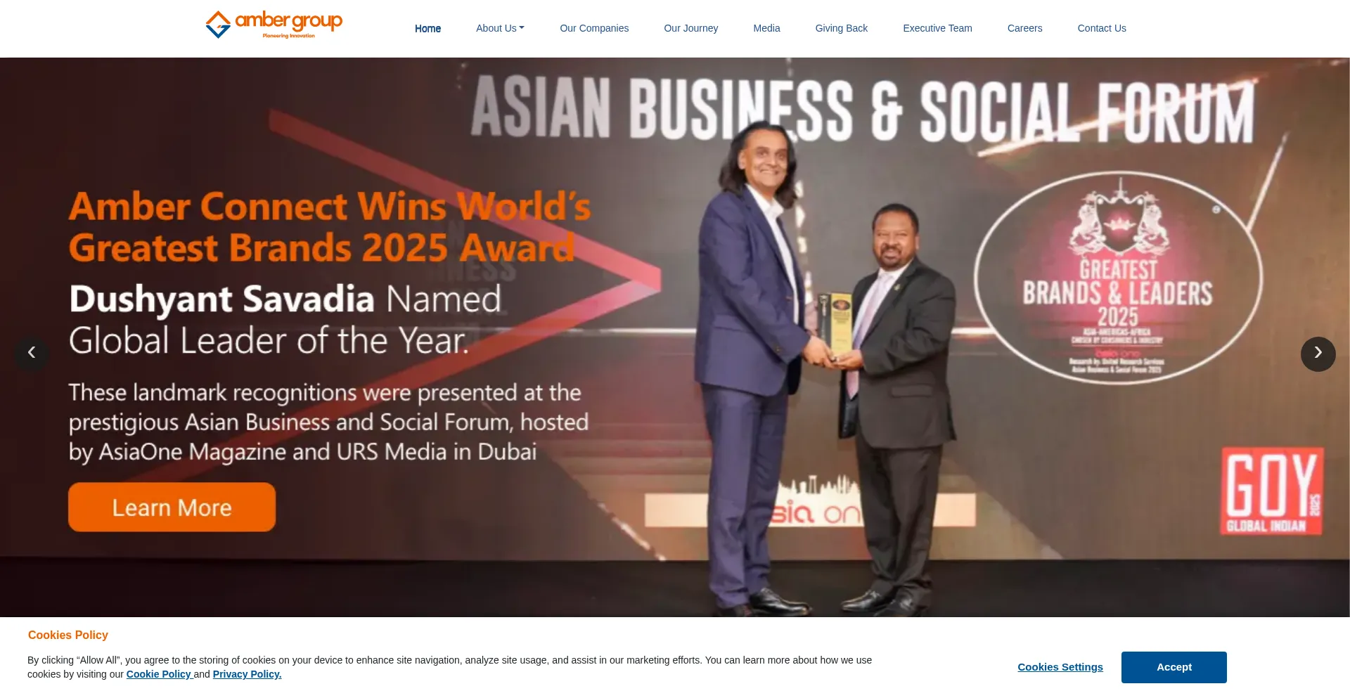 该网站实现符合GDPR或CCPA等隐私法规的cookie同意机制。这表明 myambergroup.com 遵守数据保护标准并为用户提供对个人数据收集实践的控制。