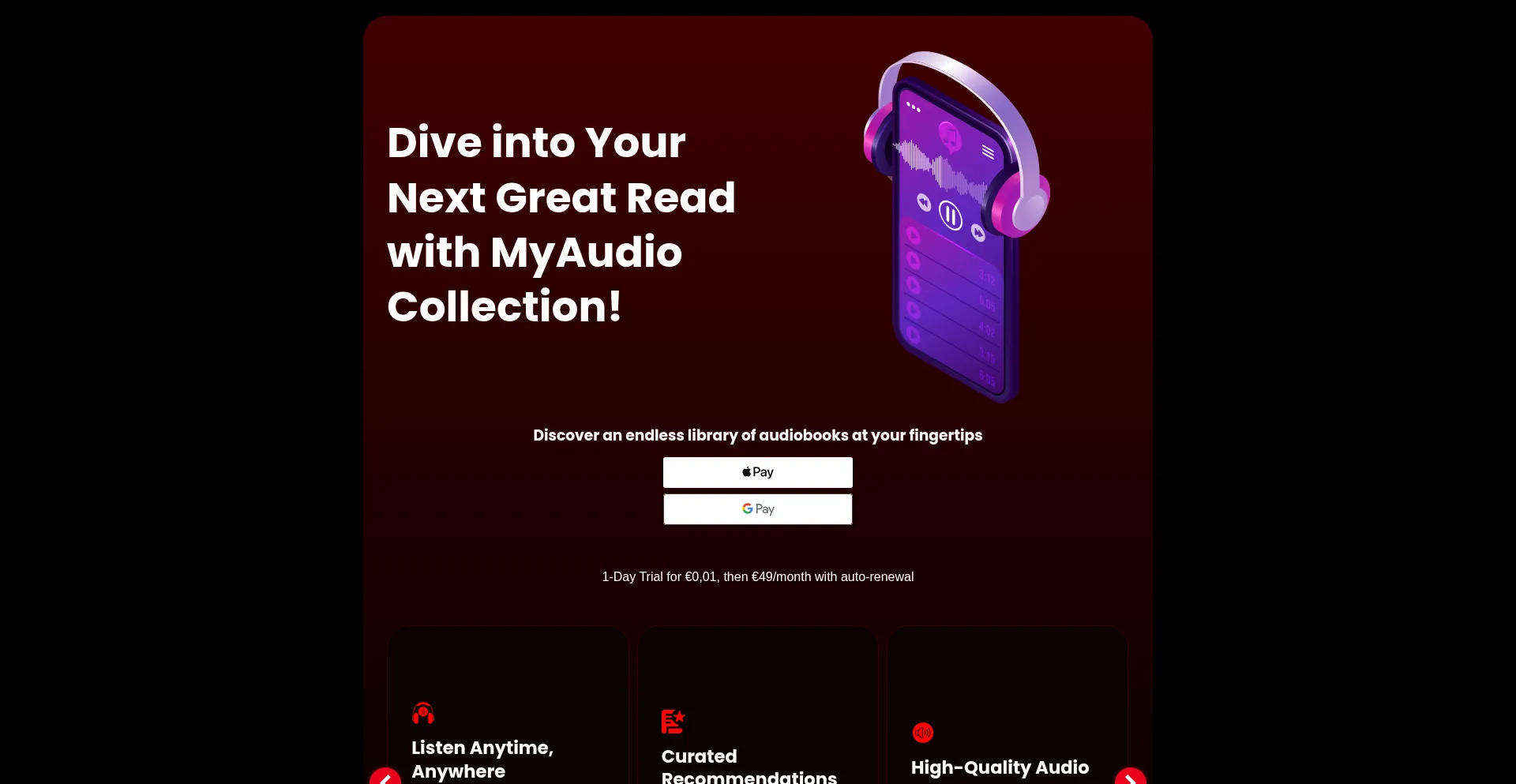该网站实现数据收集表单,请求个人信息,包括姓名、电子邮件地址、电话号码或其他敏感详细信息。用户应验证 myaudio-collection.com 的合法性并在提交个人数据前查看隐私政策。