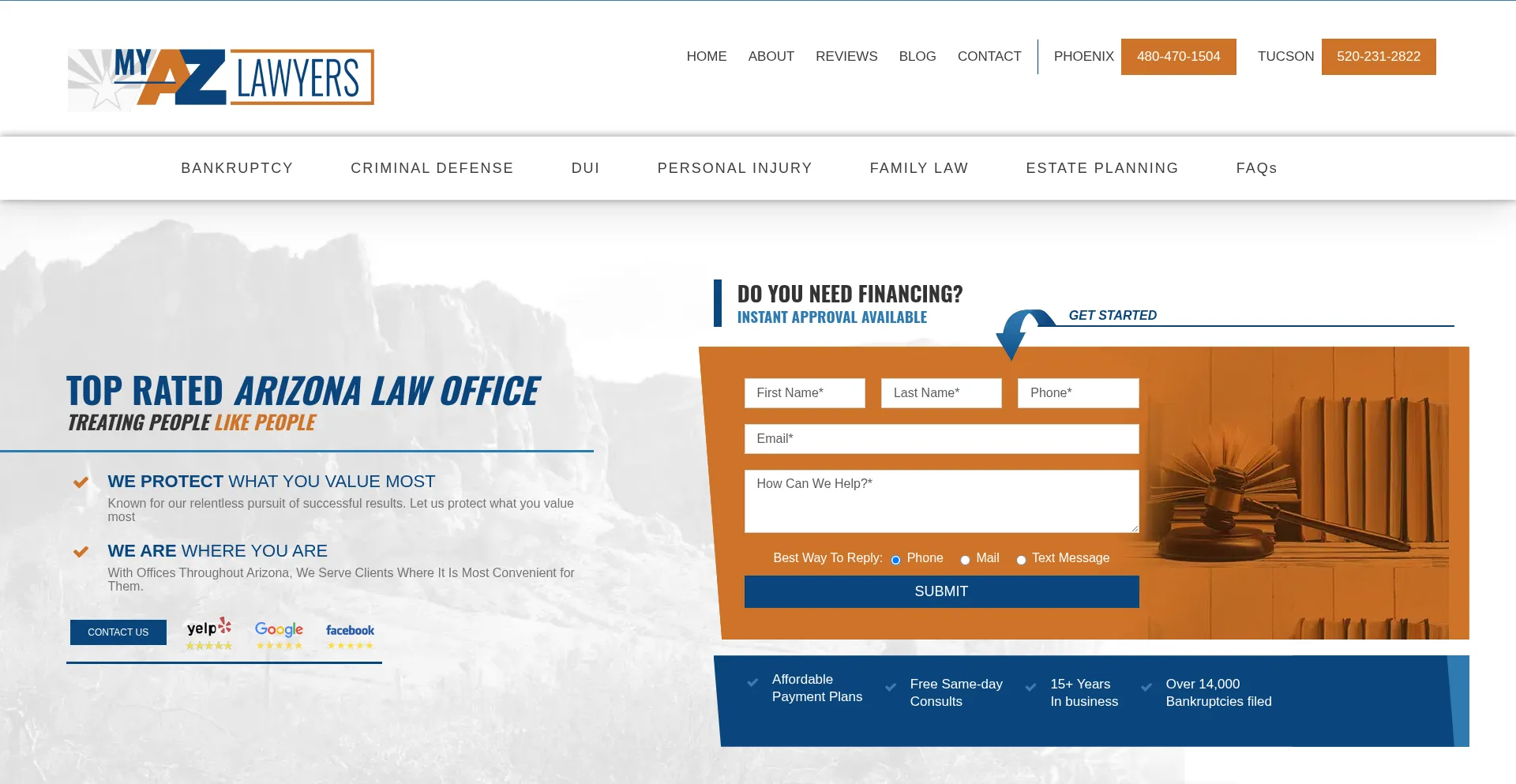Arizona Lawyers for Bankruptcy, Family Law, DUI, Personal Injury, & Criminal Defense. Free Consults. Payment Plans. Experienced AZ Attorneys (480) 448-9800