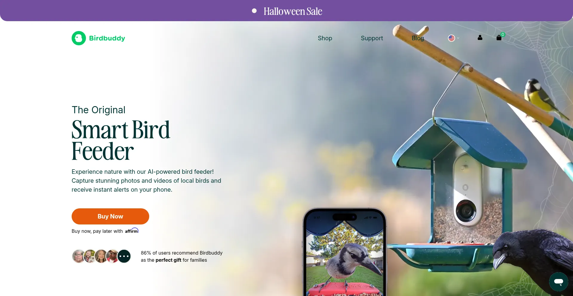 BirdBuddy is a smart bird feeder that notifies you of feathered visitors, captures their photos and organizes them in a beautiful collection!