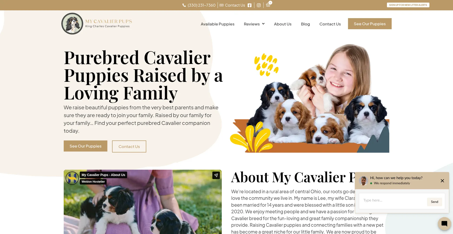 We raise the highest quality King Charles Cavalier Spaniels available, we are also now raising the rare colored Chocolate Cavaliers. Nationwide Delivery!