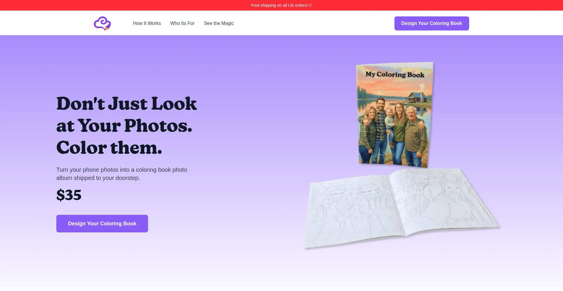 Turn your favorite photos into unique, personalized coloring books! Upload your pictures, our AI converts them, and we deliver your custom coloring book.