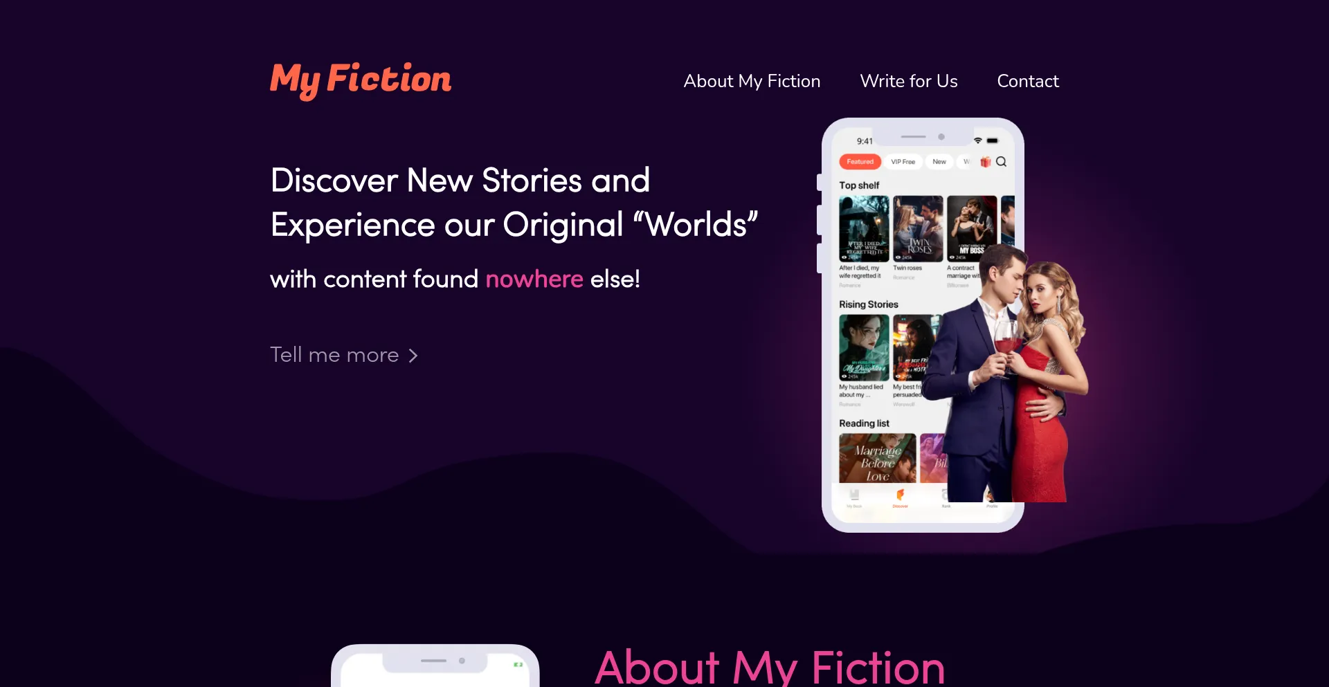 My Fiction is the platform for romance storytellers reaching new heights in this serialized, mobile reading experience while connecting with your favorite authors.
