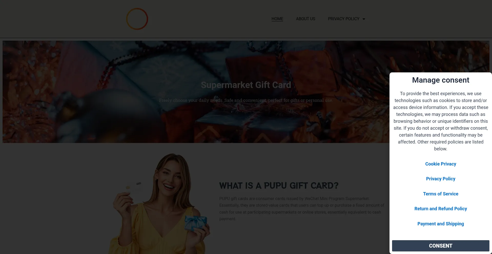 PUPU gift cards are consumer cards issued by WeChat Mini Program Supermarket.