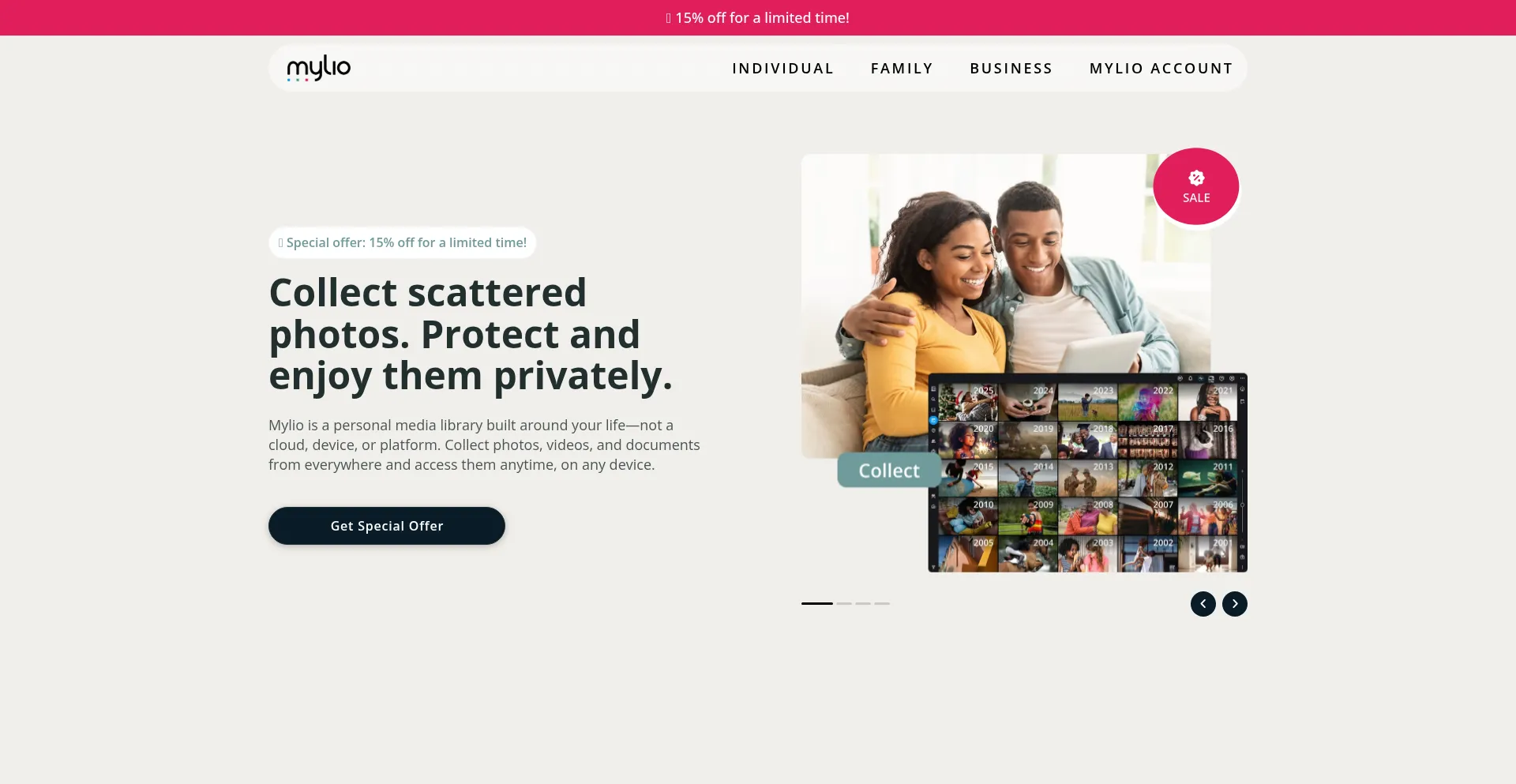 网站上存在社交媒体链接表明 mylio.com 在社交媒体上维护官方账户,这是可信度和参与度的积极信号。