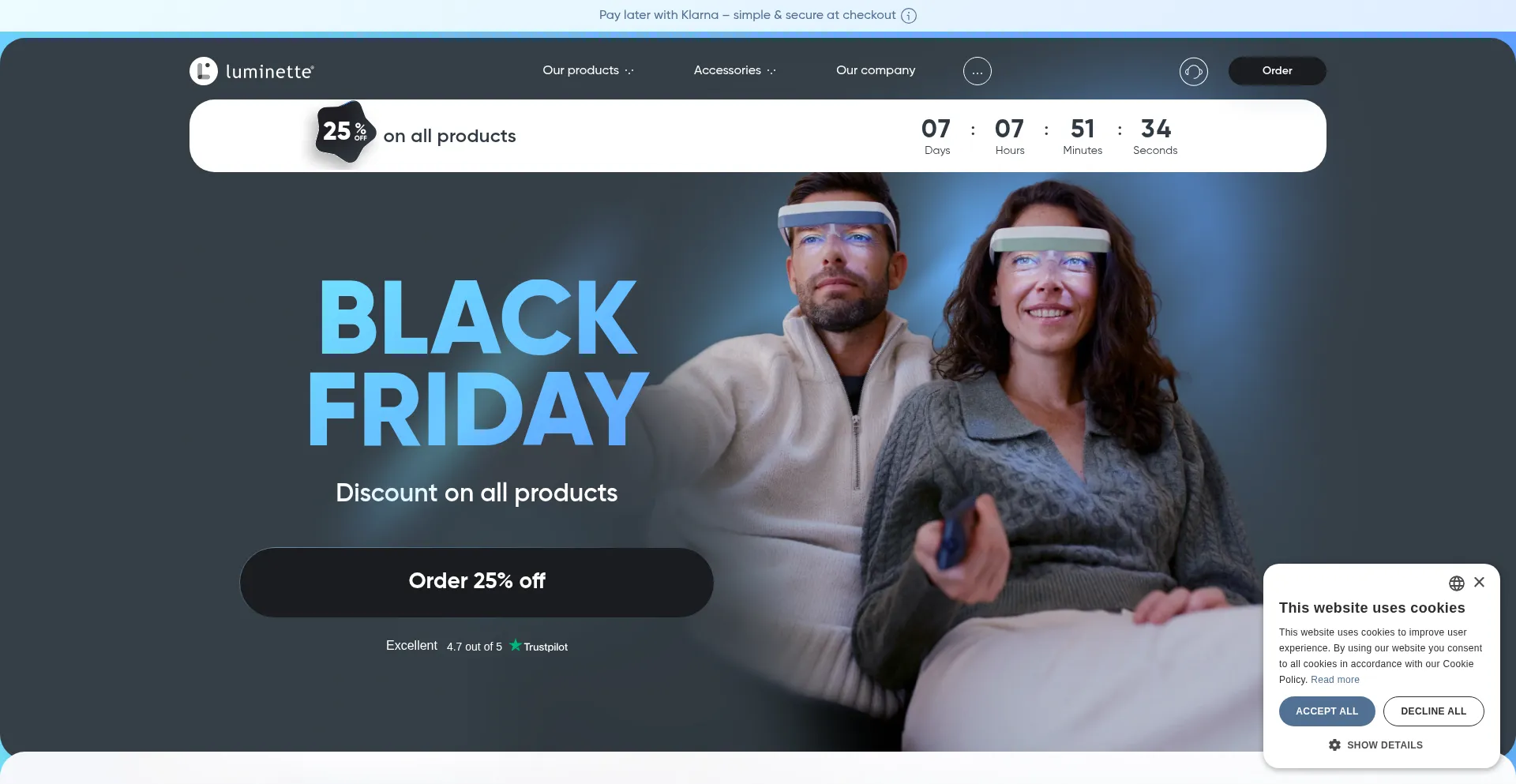 该网站实现符合GDPR或CCPA等隐私法规的cookie同意机制。这表明 myluminette.com 遵守数据保护标准并为用户提供对个人数据收集实践的控制。
