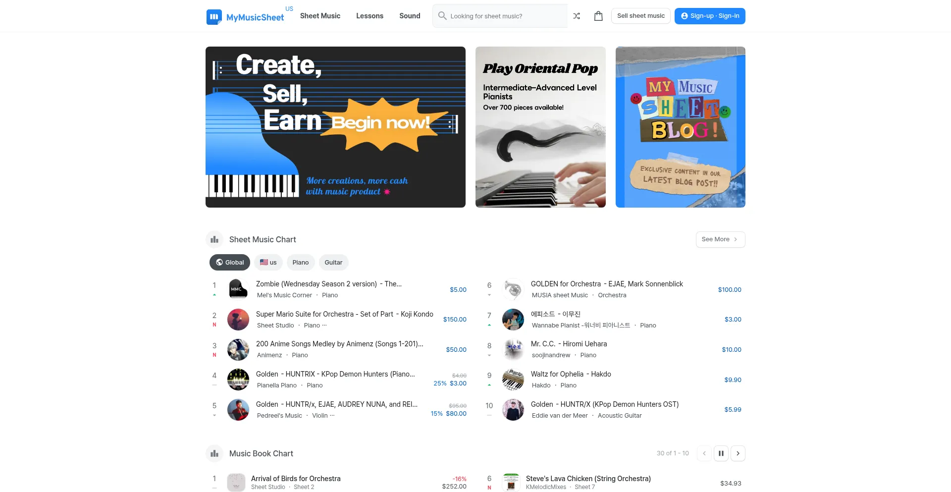 Learn the sheet music with lesson videos of your favorite music from 5,000+ music creators all over the world at the same time! | mymusic5