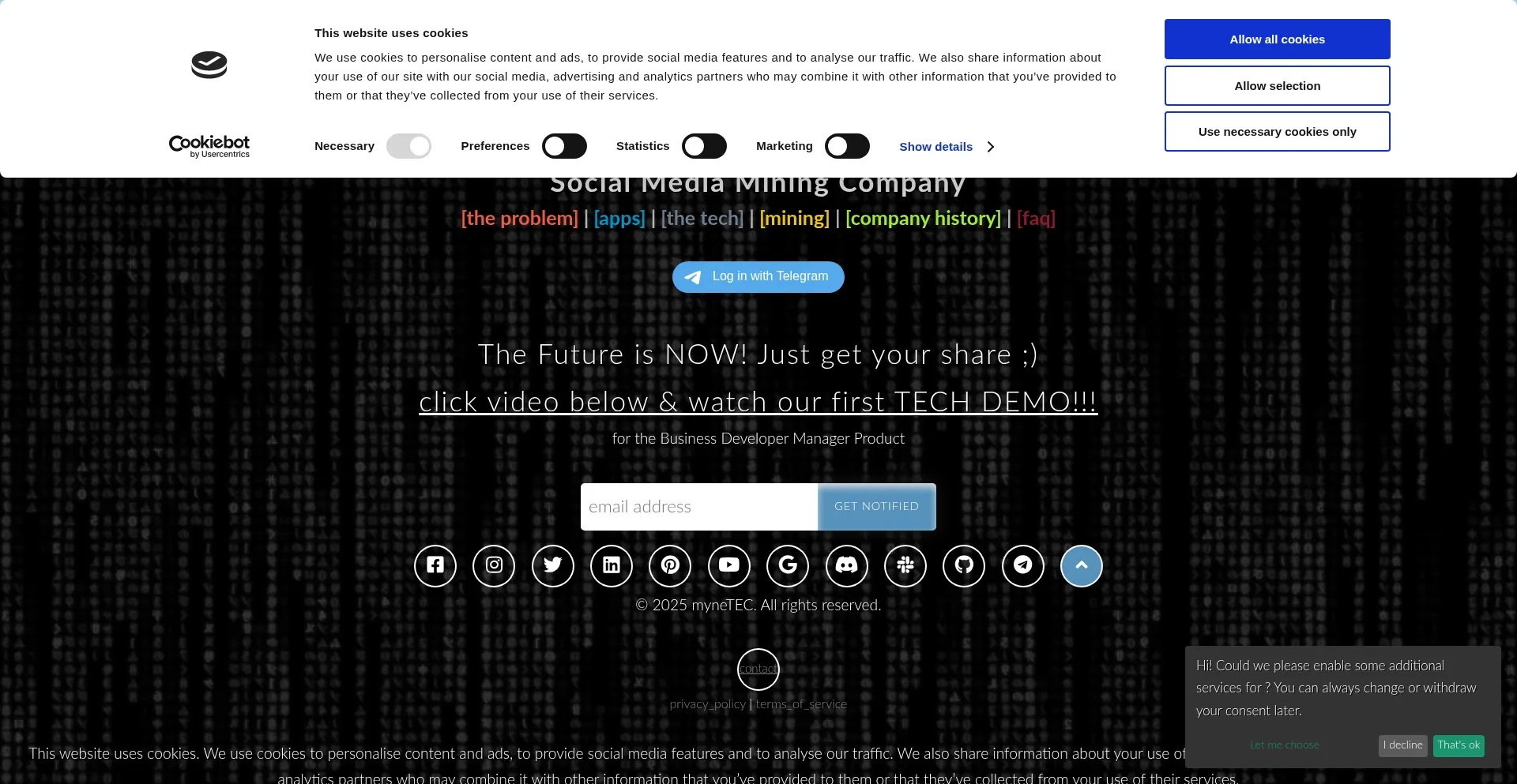 网站上存在社交媒体链接表明 mynetec.com 在社交媒体上维护官方账户,这是可信度和参与度的积极信号。